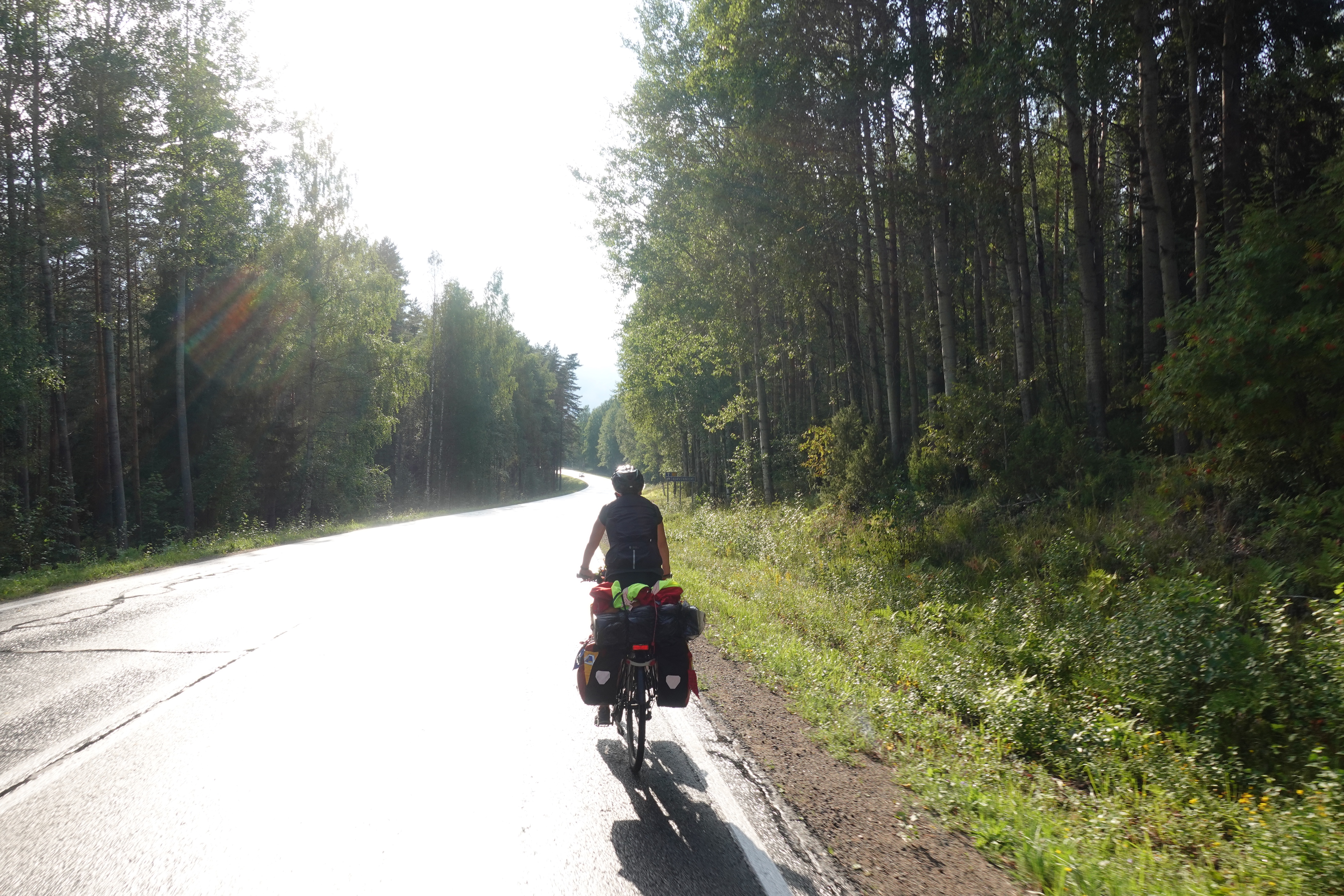 Sonne: die haben wir in großen Teilen bislang genießen dürfen. Im Norden sowieso noch mehr, da sie dort fast gar nicht unterging. Aus diesem Grunde waren wir zunächst auch etwas durcheinander, weil es sich nicht anfühlte wie Nacht und nur durch den Blick auf die Uhr oder unseren Müdigkeitslevel zu erkennen war. Wenn die Sonne von Wolken bedeckt ist, und das kommt oft vor, dann ist es auch gleich kühl bis kalt. Kaum sind die Wolken weg, auch das kommt oft und schnell vor, wird es richtig warm und wir haben wieder das Problem auf dem Rad, dass wir nicht schnell genug unsere Kleidung der Temperatur anpassen können.