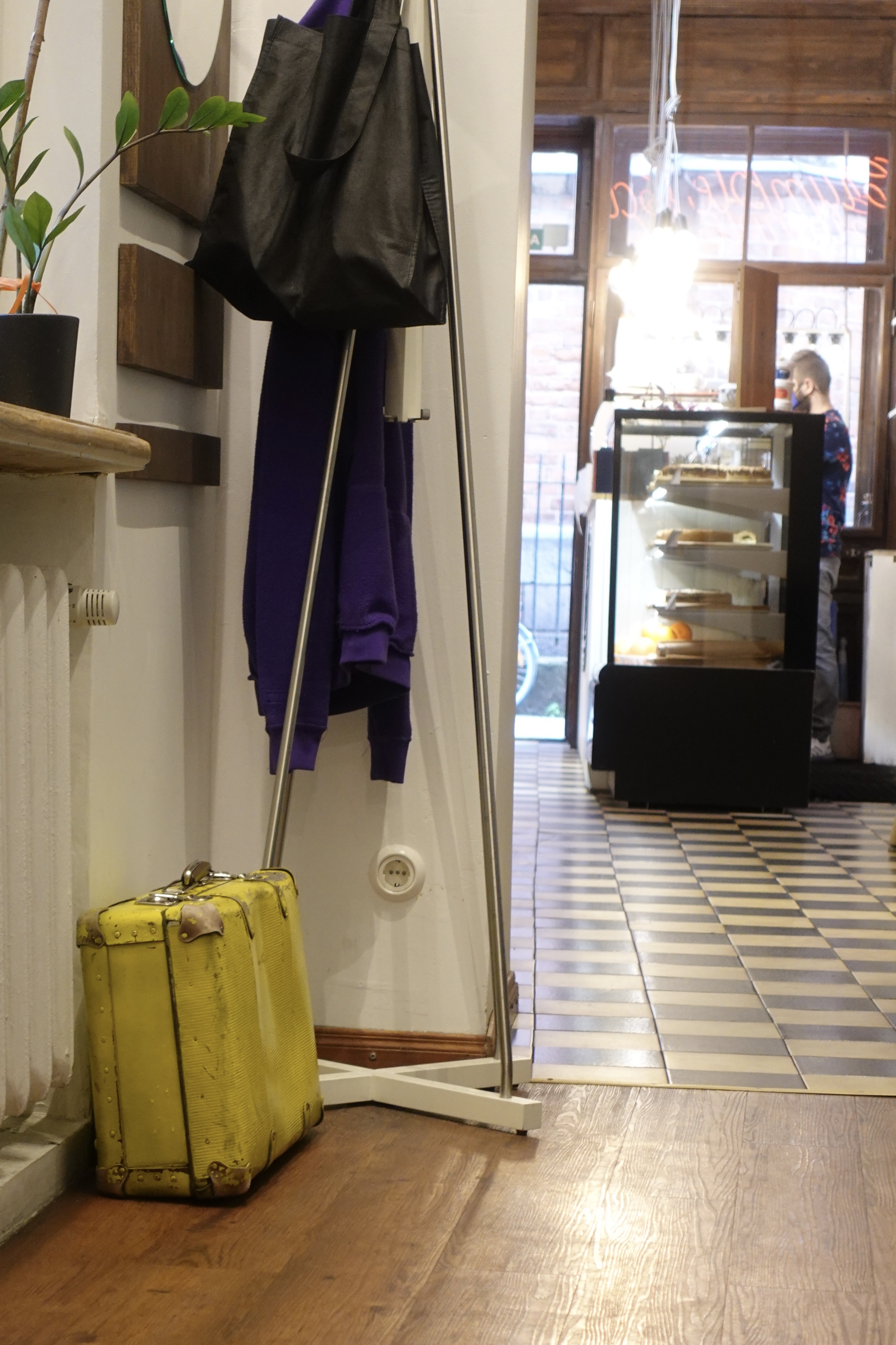 Unsere Räder haben wir im Hinterhof unseres Apartments abgeschlossen und am nächsten morgen fehlt bei Ben die Tasche, in die er sonst seine Kette schiebt. Nicht dramatisch aber ein unschönes Gefühl ist es allemal, wenn etwas gestohlen wird. Wir machen uns auf und suchen in einem Fahrradladen eine neue Tasche. Wir müssen ganz schön weit rausfahren, bis wir einen Laden finden, der das gesuchte im Sortiment führt. Die Empfehlung kommt von Helmut, dem Juristen mit dem lustigen Versprecher. Der Laden ist supergut sortiert und wir stöbern mit Begeisterung herum. Ben fragt nach warmen und wasserdichten Handschuhen. (Wir haben ja bereits auf der Tour erlebt, wie nass man werden kann) Der Verkäufer meint er würde immer mehrere Paar auf einer Tour dabei haben. Das finden wir doof, denn wenn ein Paar nicht trocknen kann, tun das die anderen nassen Handschuhe auch nicht. Schließlich fällt ihm noch etwas ein und er recherchiert und telefoniert und schickt uns zu einer Adresse eines Fahrradkuriers, der da was hat…
