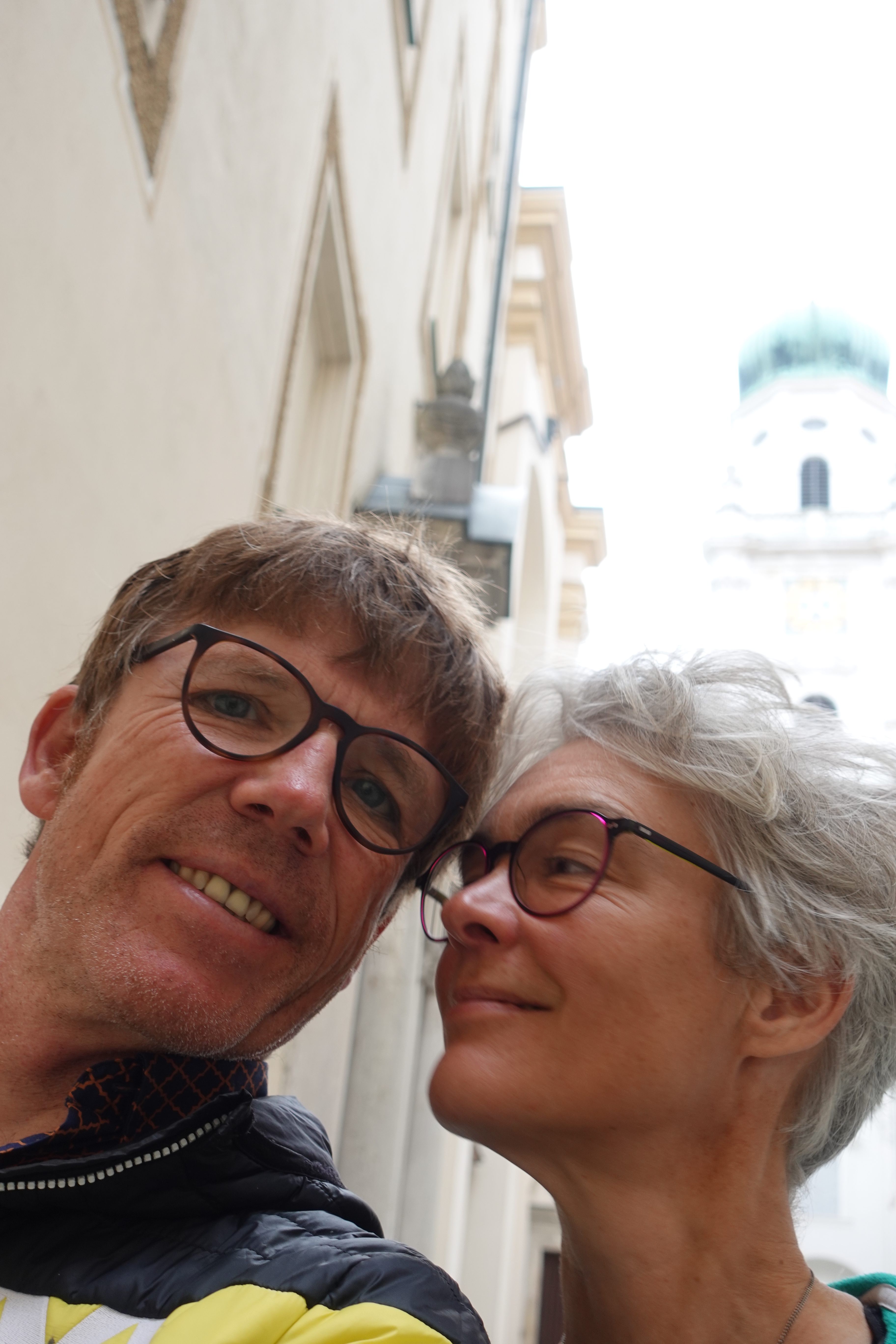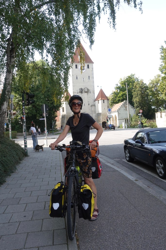Wir beginnen unsere Donaureise bei strahlendem Sonnenschein in Regensburg. Die Stadtmitte wunderschön, so sagt man, wir haben keine Lust uns das anzuschauen, wir wollen aufs Rad und nach so vielen Tagen im Sitzen erst einmal fahren. Aber wo ist jetzt bitteschön der Radweg? Da wir suchende Touristen sind und auch so aussehen, kommt schnelle Hilfe in Form eines Regensburger Radelbürgers, der gerade einen kleinen Ausflug machen will. An einer Ampel an der wir stehen fragt er nach dem Woher und Wohin und bietet dann an uns auf den rechten Pfad zu setzen. Dankbar folgen wir ihm und schon sind wir auf der richtigen Spur.