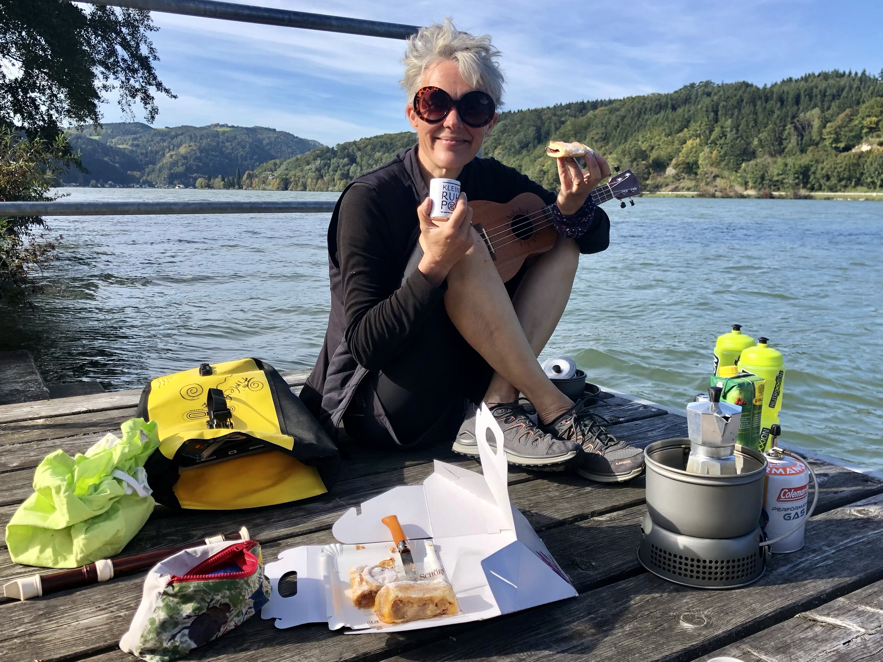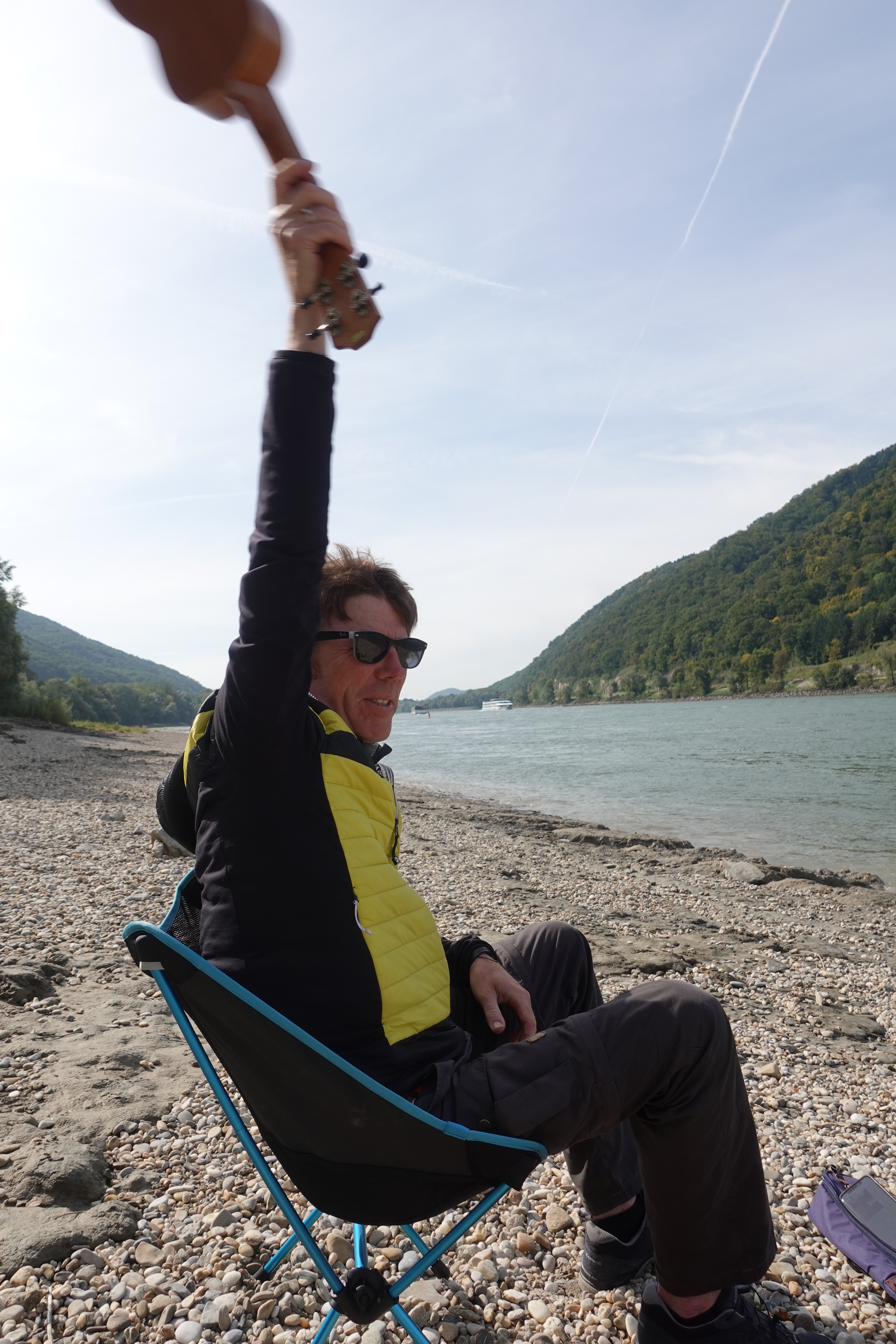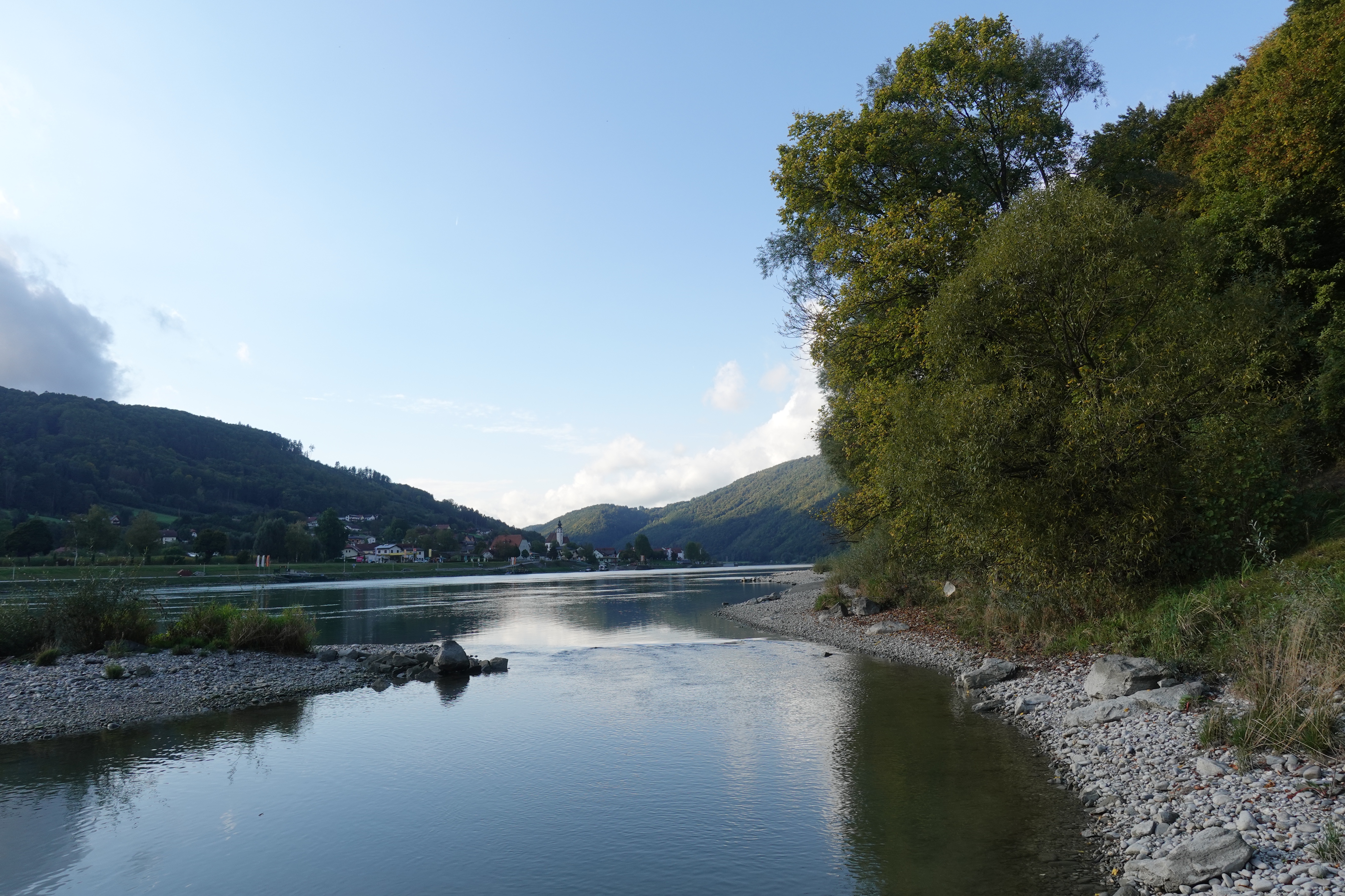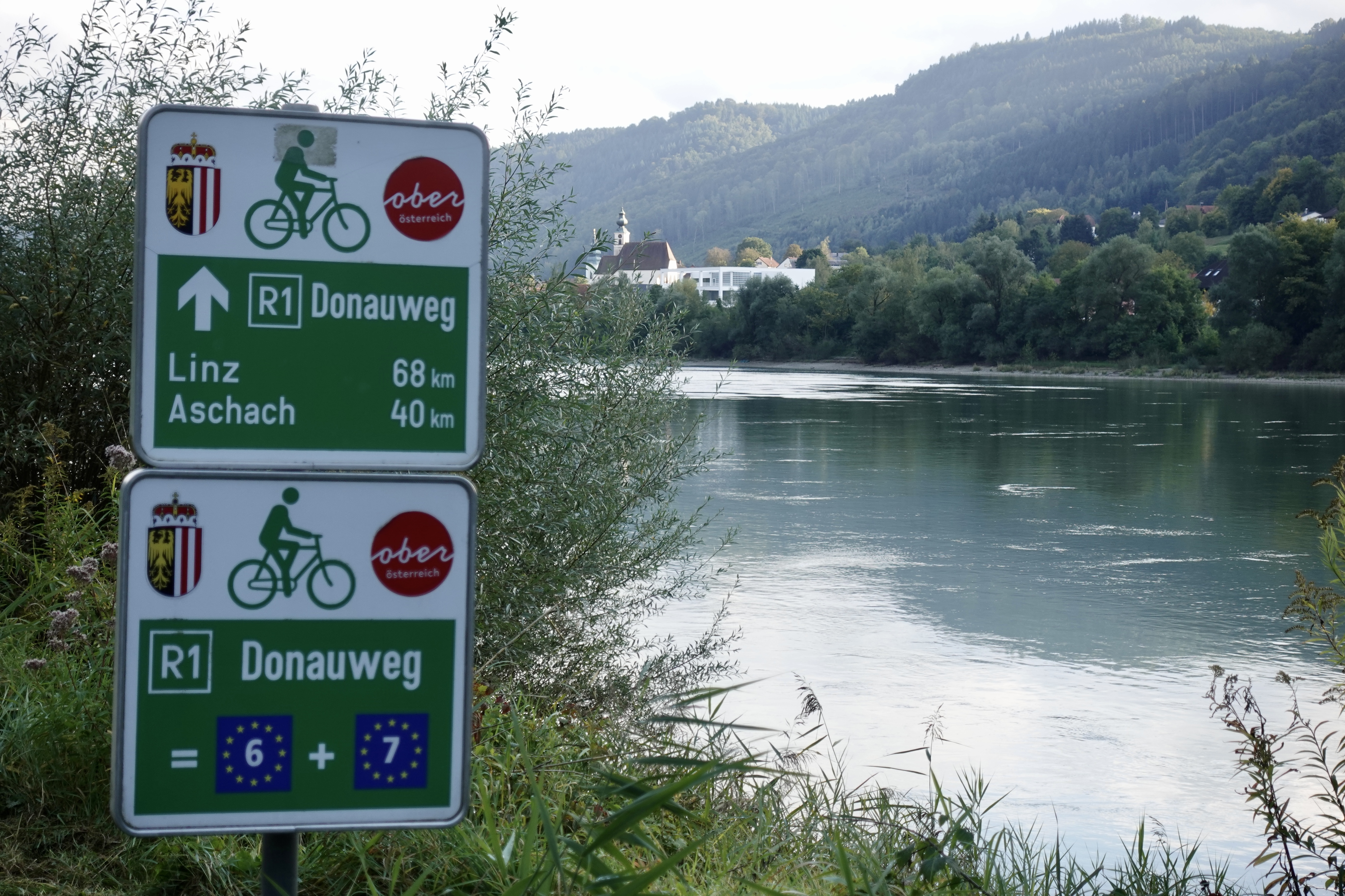 Die Donau haut uns um. Wir sind ohne Vorbereitung und ohne Erwartung hier gelandet und uns beeindruckt die Vielfalt der Landschaft, die wir durchradeln: flache Auenlandschaften werden von steilen Felshängen abgelöst und gehen in Weinhänge über. Die Donau ist mal wahnwitzig breit und wird dann wieder schmaler, weil die Berge kaum einen Durchfluss lassen. Spannend! Außerdem quillt hier Kultur aus allen Ritzen und Ecken. Wir sind sehr banausig und schauen uns fast alles nicht an. Lieber versucht Ben die Menschen auf den unzähligen Flusskreuzfahrtschiffen zum Winken zu animieren.