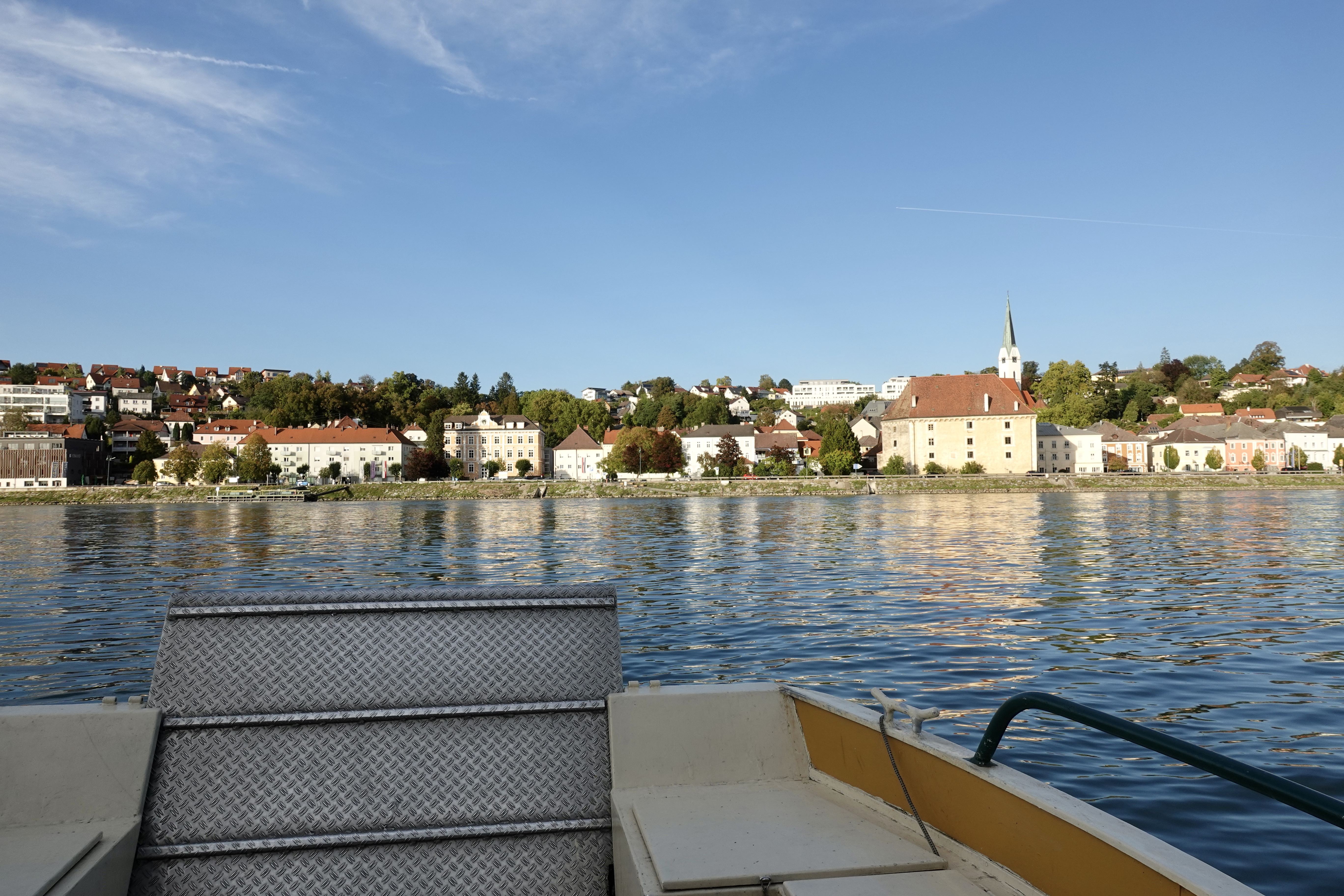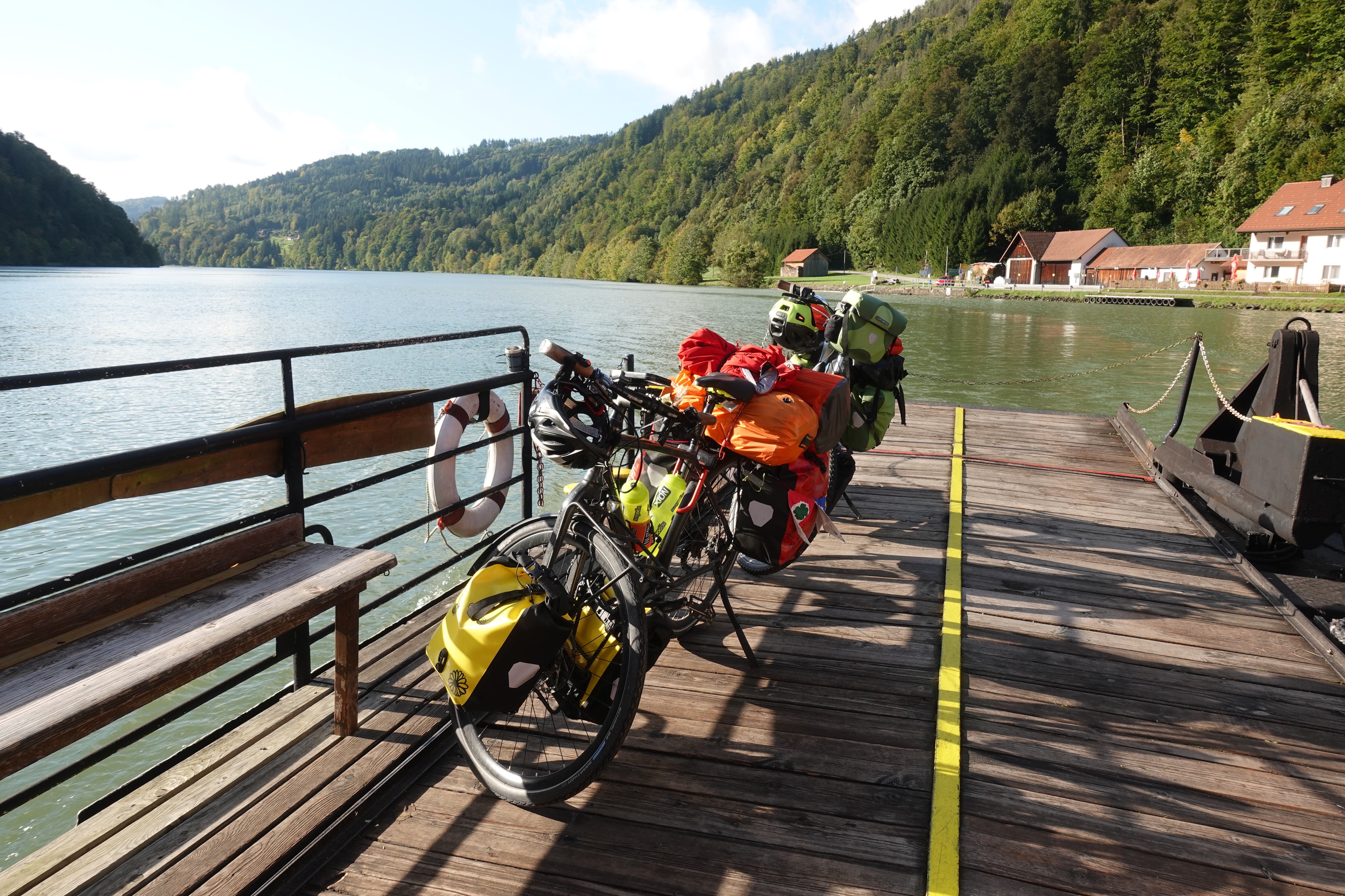 Einen Fluss muss man ab und zu überqueren. Meist geht das mit einer Brücke aber auf dem Donauradweg sind auch viele Fähren zu finden, die einen flott an das andere Ufer bringen. Wir fahren mit der Fähre so oft es geht, denn der Radweg geht auf beiden Seiten des Ufers entlang. Da können wir, wann immer wir eine Fähre finden das Ufer wechseln. Zumindest bis Anfang Oktober, dann ist die Saison vorbei und einige Fähren stellen den Dienst ein.