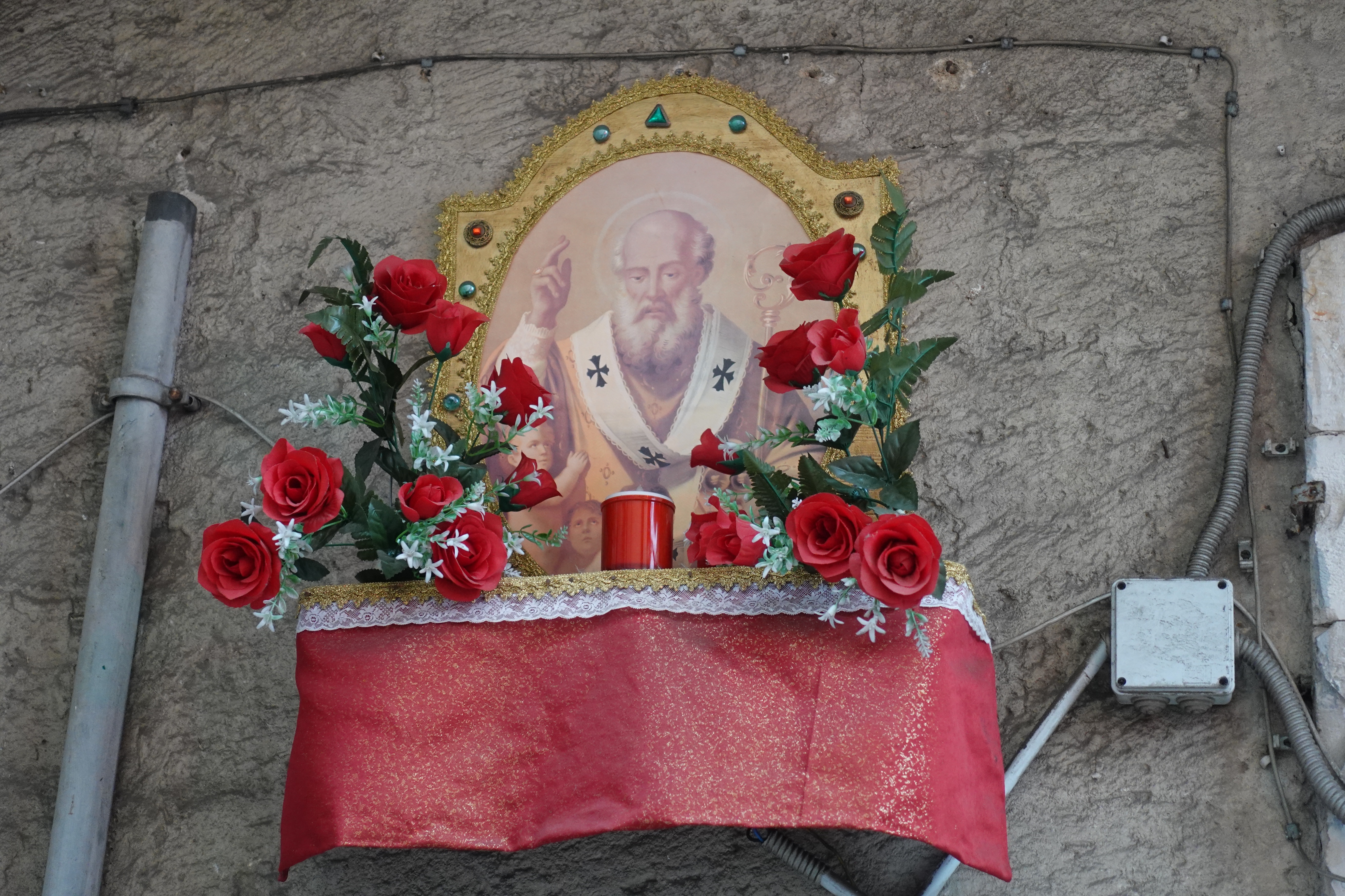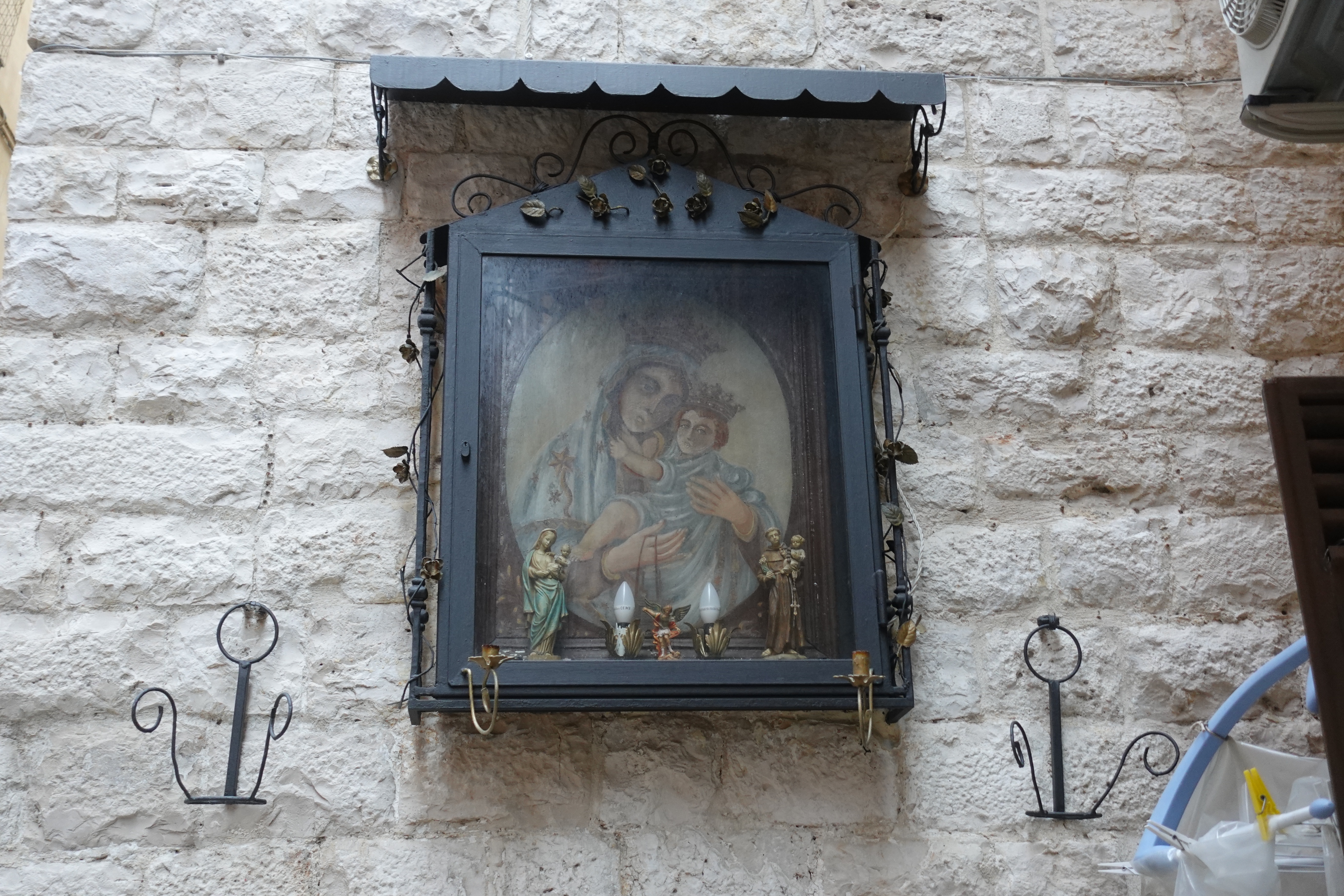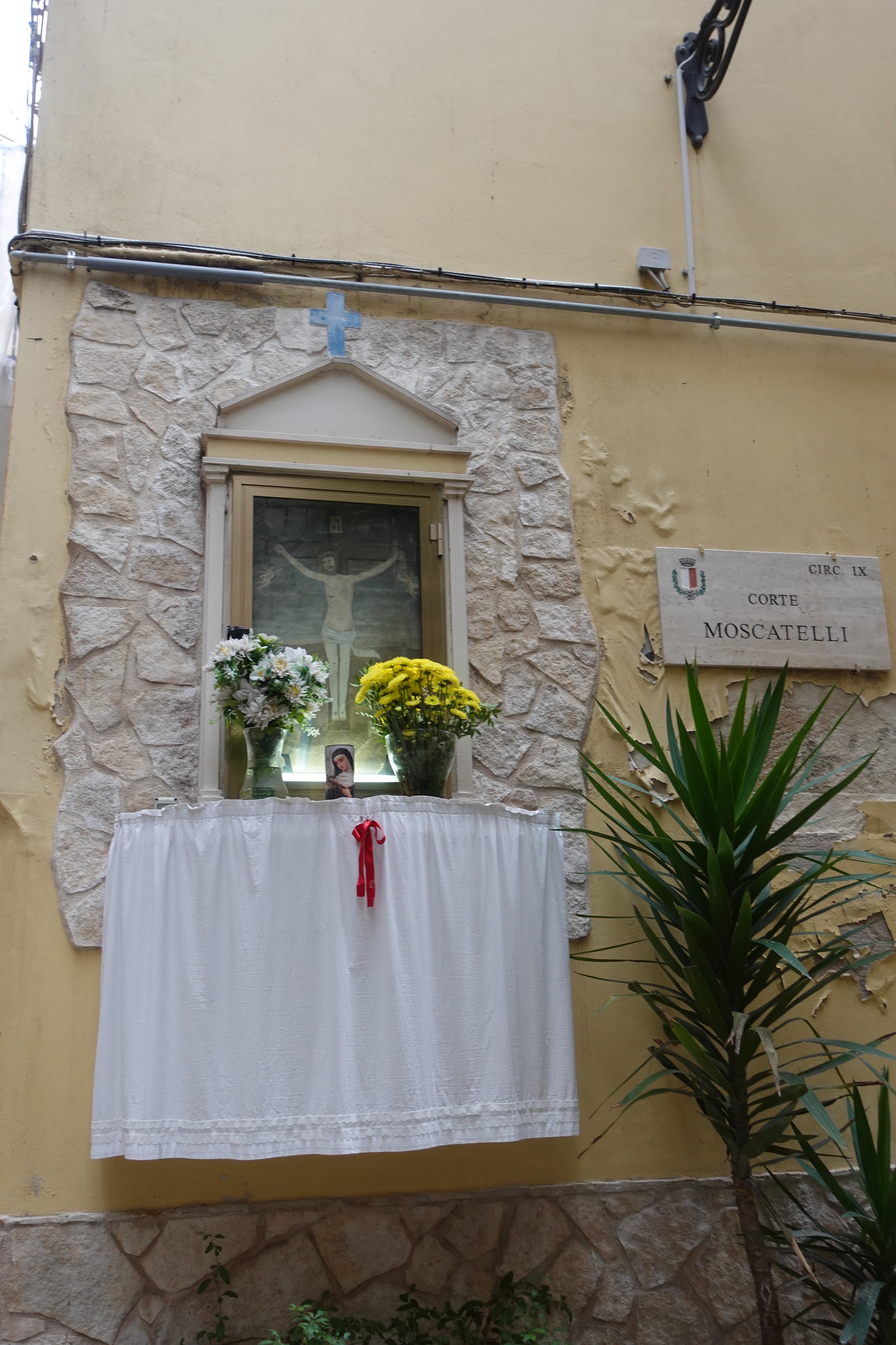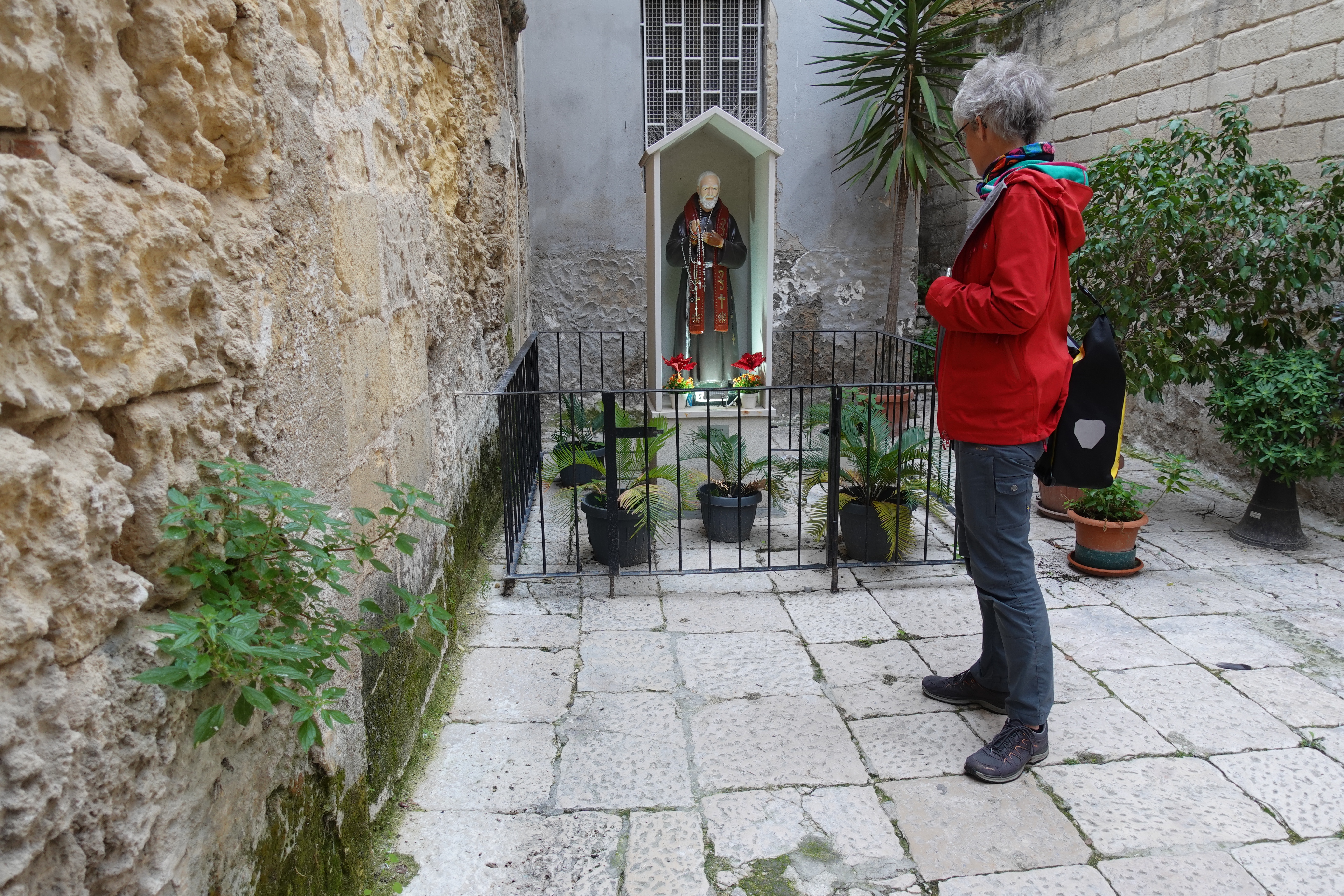 In der Altstadt ist an fast jedem Haus ein Heiligenschrein zu finden. Die Wohnungen gehen direkt auf die Straße und wir werden Zeugen von Mittagessen, Streitereien und Gesprächen, da alle Türen offen stehen. Die ganze Altstadt riecht nach frischer Wäsche: die Wäsche wird vor den Fenstern zum Trocknen aufgehängt, sollte es nass werden mit Folie abgedeckt und hier scheinen alle mit Unmengen an Weichspüler zu waschen. Es riecht sehr intensiv!