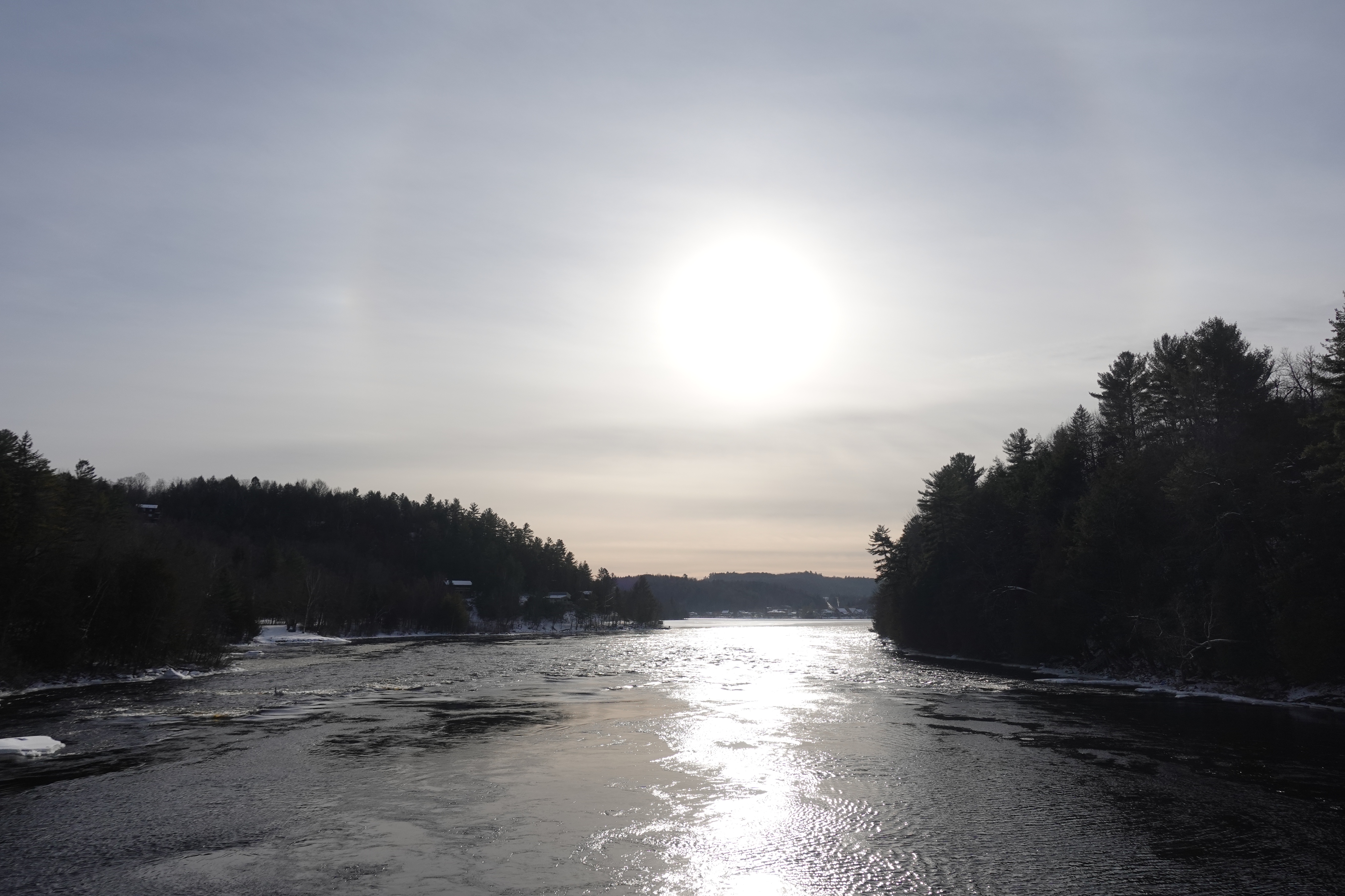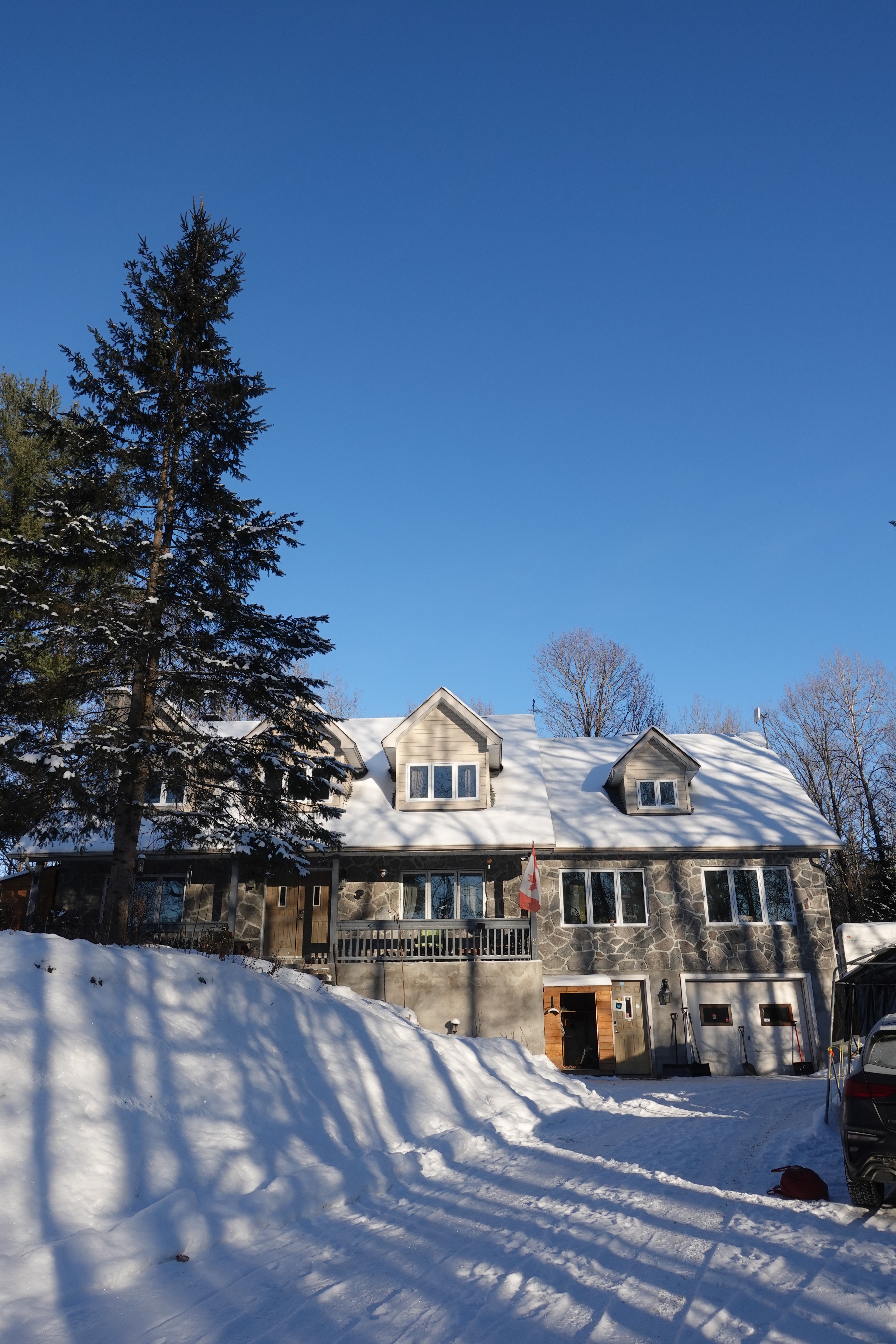 Kanada habe ich schon einige Male bereist aber noch nie im Winter. Auf den ersten Blick scheint es nicht so anders zu sein. François, Kathys Mann, versichert mir allerdings, dass es derzeit wenig Schnee gäbe für kanadische Verhältnisse: sehr wenig. Nun ja, mir reicht es vollkommen, noch bin ich nicht wild darauf, mir einen Weg durch Schneemassen zu graben. Die Temperaturen sind allerdings sehr niedrig: – 23• C! Es ist keine gute Idee, selbst wenn man nur für einen kurzen Moment draußen ist, die Mütze und die Handschuhe zu vergessen. Die Kälte krabbelt nicht in mich hinein, sondern überfällt mich sofort und heftig. Die Nase friert ein, da ist es richtig angenehm, die FFP2-Maske zu haben. Damit bleibt mein Gesicht schön warm. Dadurch, dass die Luft so kalt und trocken ist, bilden sich auch kaum Atemwolken. Die Sonne scheint und es ist einfach nur sehr kalt!