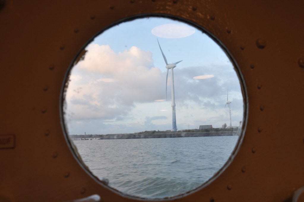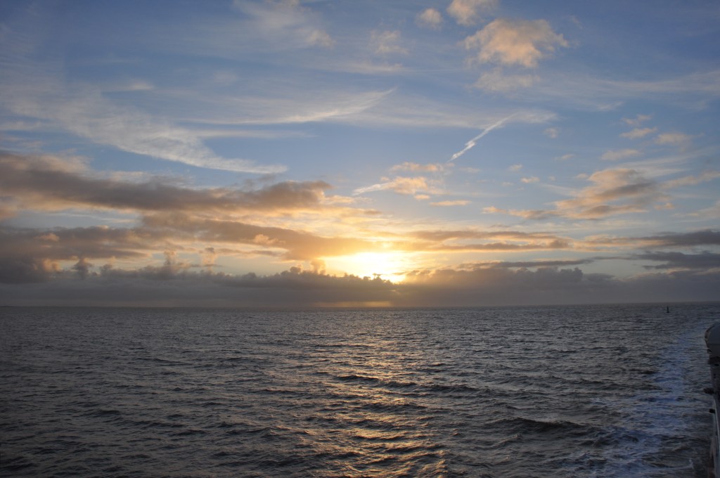 Die Idee, mit dem Fahrrad nach Emden zu fahren, verwerfe ich angesichts der ungemütlichen Wetteraussichten und so fahren wir mit dem Auto über Eemshaven nach Borkum. Es gibt nur zwei Fähren pro Tag, morgens und nachmittags. Das ist, verglichen mit dem Fährbetrieb in der Hochsaison, auf das Notwendigste reduziert.