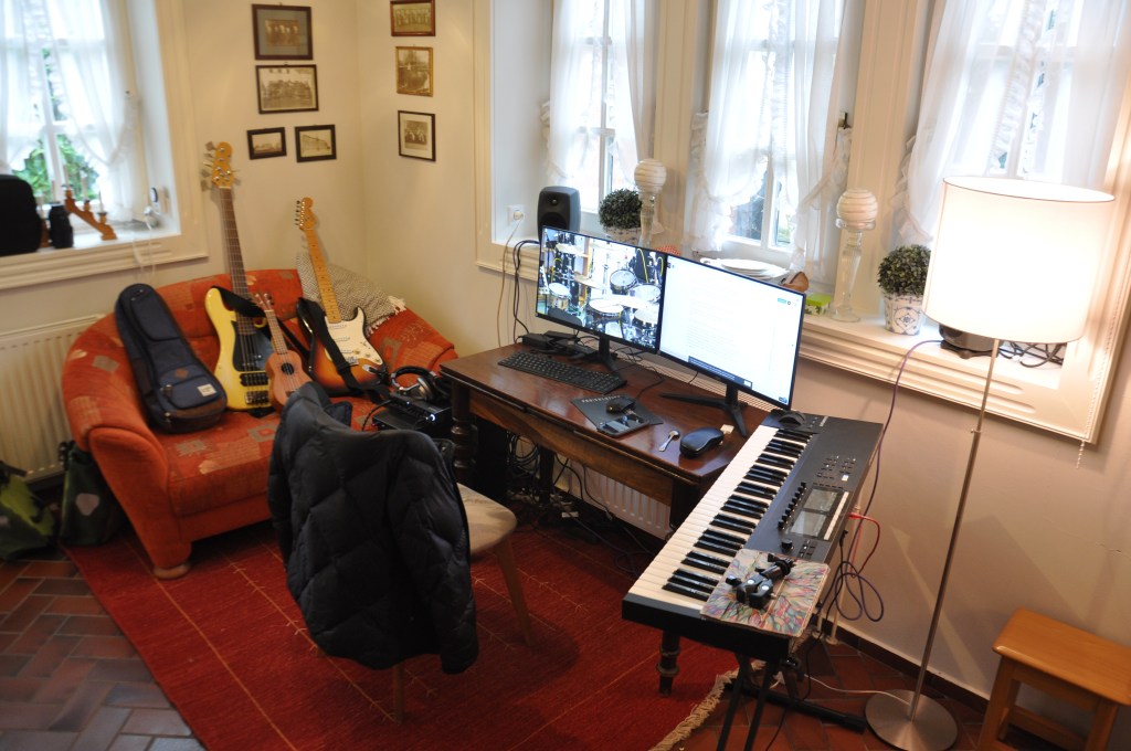 Ich habe meinen Computer, Interface, Mikrofone, Kamera und Videokamera, Keyboard, Gitarre, Bass und Ukulele mitgenommen, habe in meinem Apartment ein kleines Studio eingerichtet und kann mich ausgiebig mit Aufnahmeprogrammen beschäftigen. Da ich in den letzten Jahren schulisch immer weniger mit Musikproduktion zu tun hatte, kann ich die Zeit hier ideal nutzen, um mich wieder auf den neuesten Stand zu bringen. Programme aktualisieren, Tutorials schauen und Probleme lösen ohne Zeitdruck, ein Riesenluxus, den ich sehr genieße.