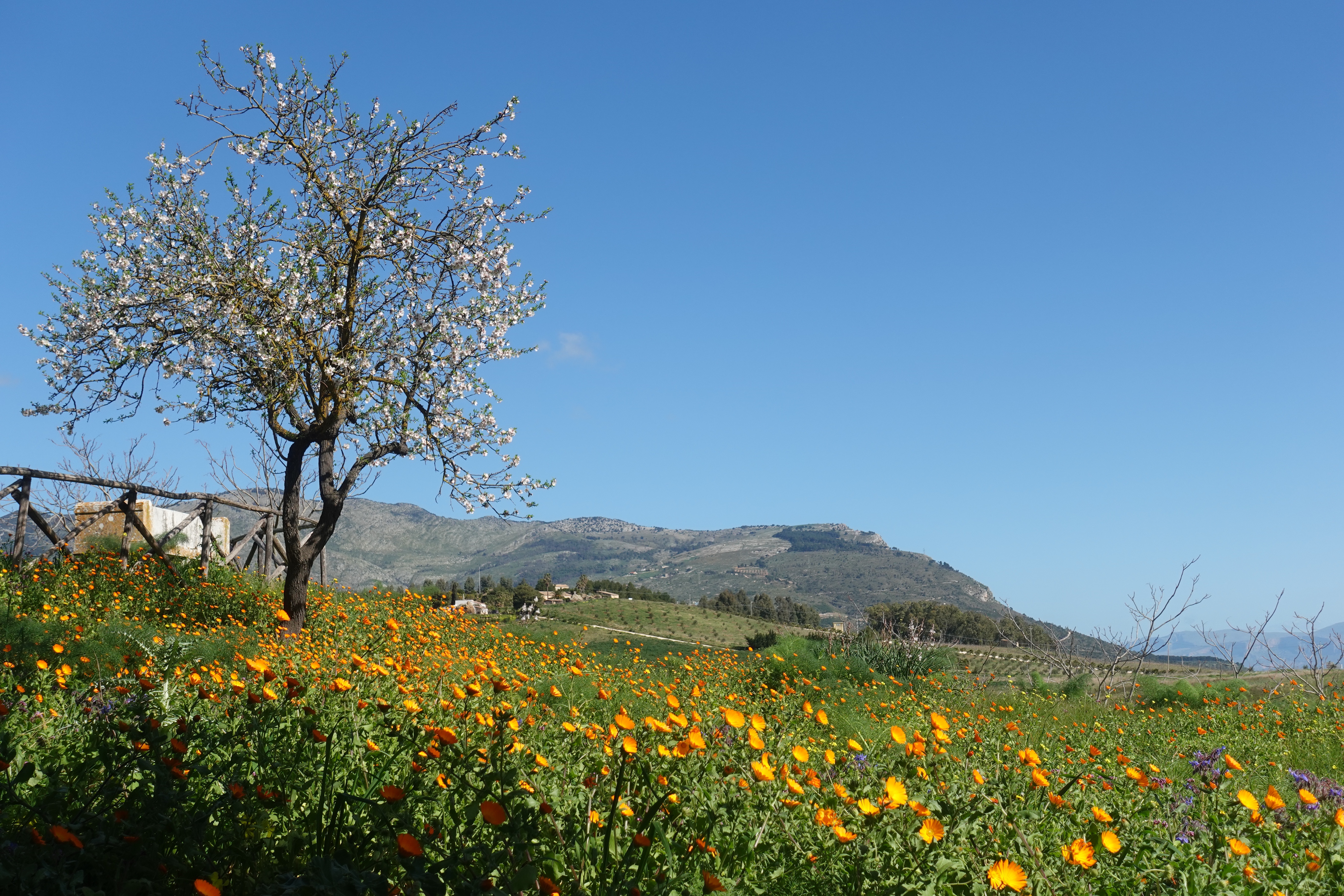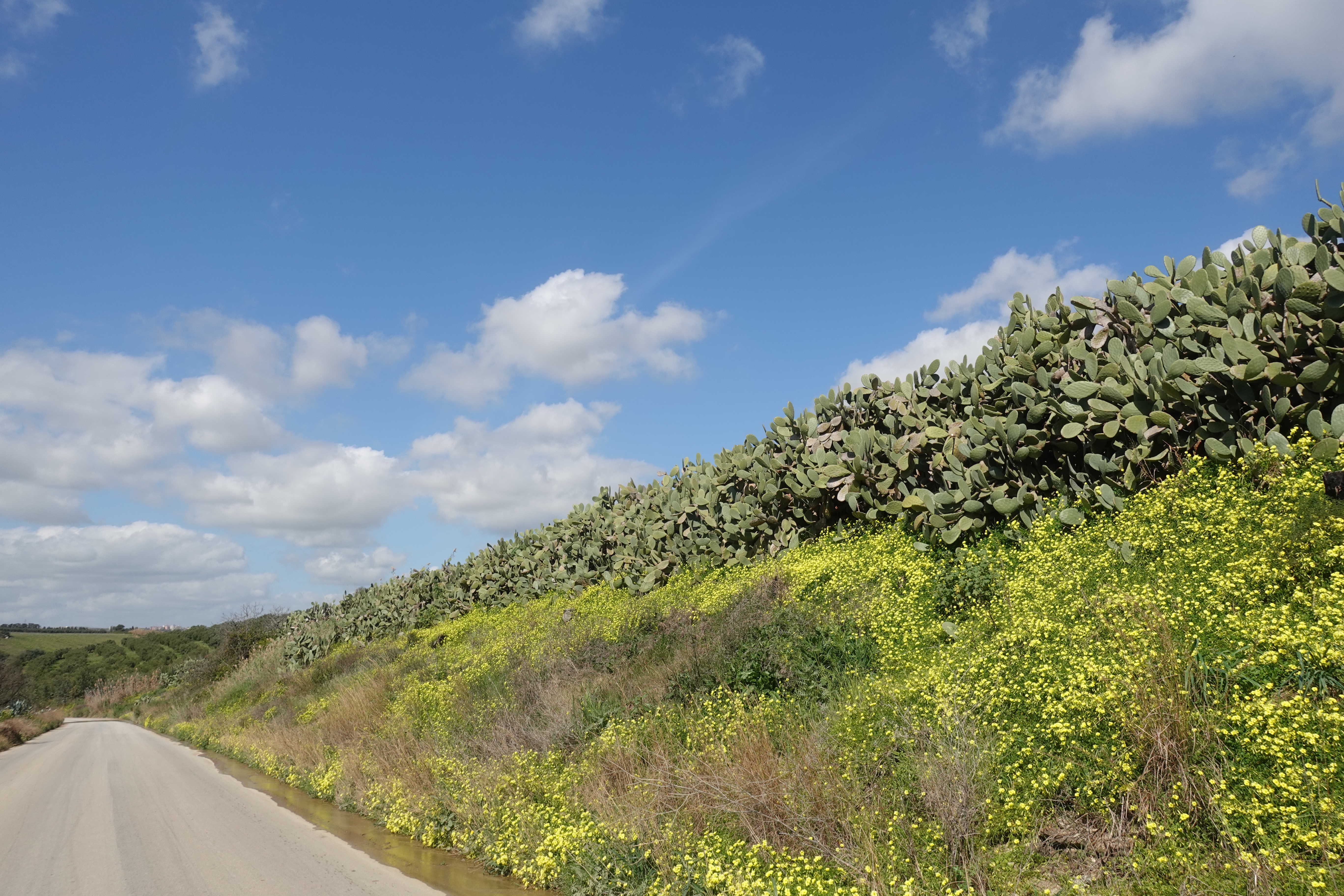 Der Frühling ist da! Zack! Überall knallen uns die Farben entgegen, obwohl ein wilder Wind weht fühlt es sich nach Frühling an und riecht überall so. Dicke Rosmarinbüsche leuchten blau, Felder voll mit kleinen Blüten, gelbe Margeritten, wilde Geranien und jede Menge anderer Blumen, die wir nicht benennen können. Ein wilder Farbenrausch!