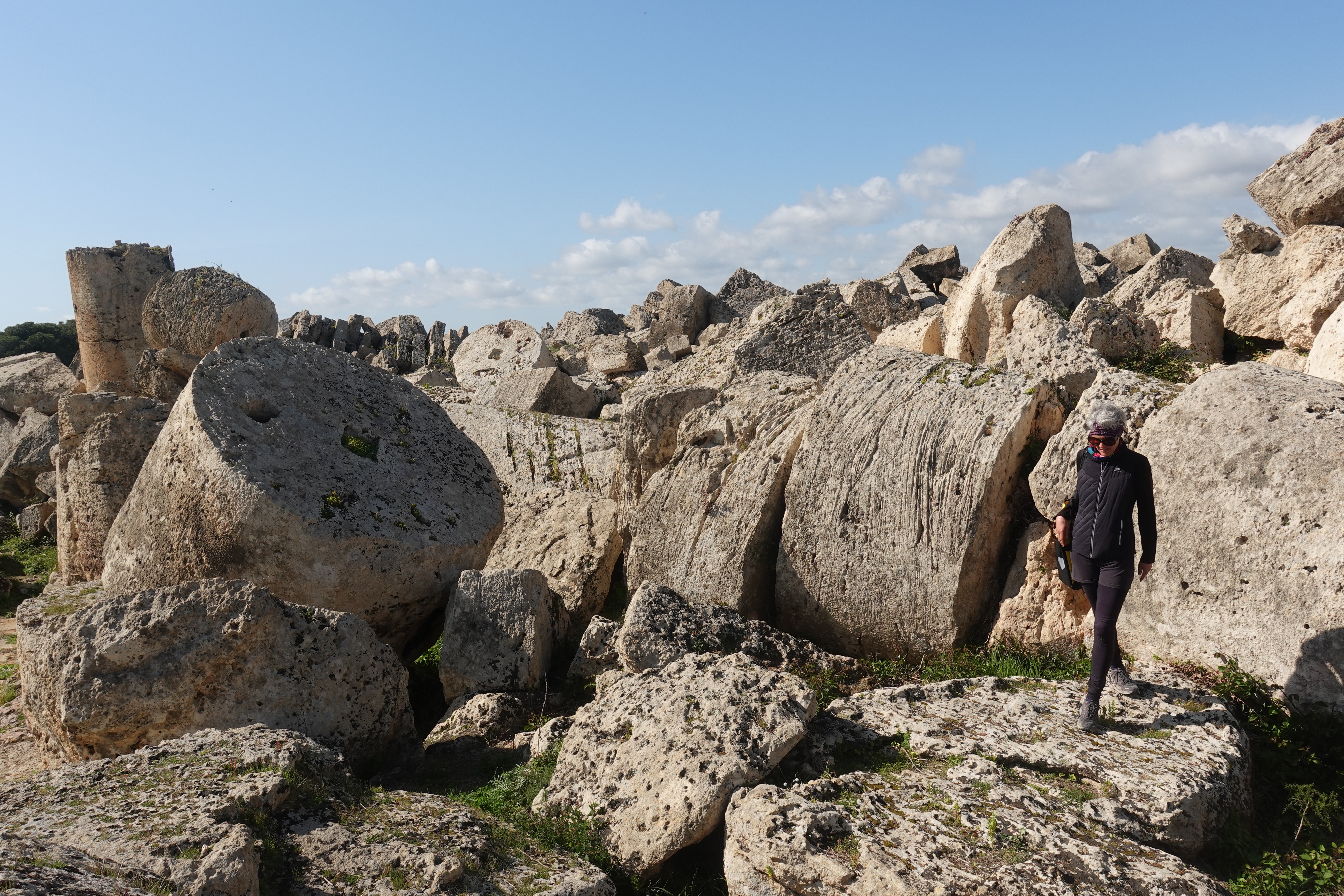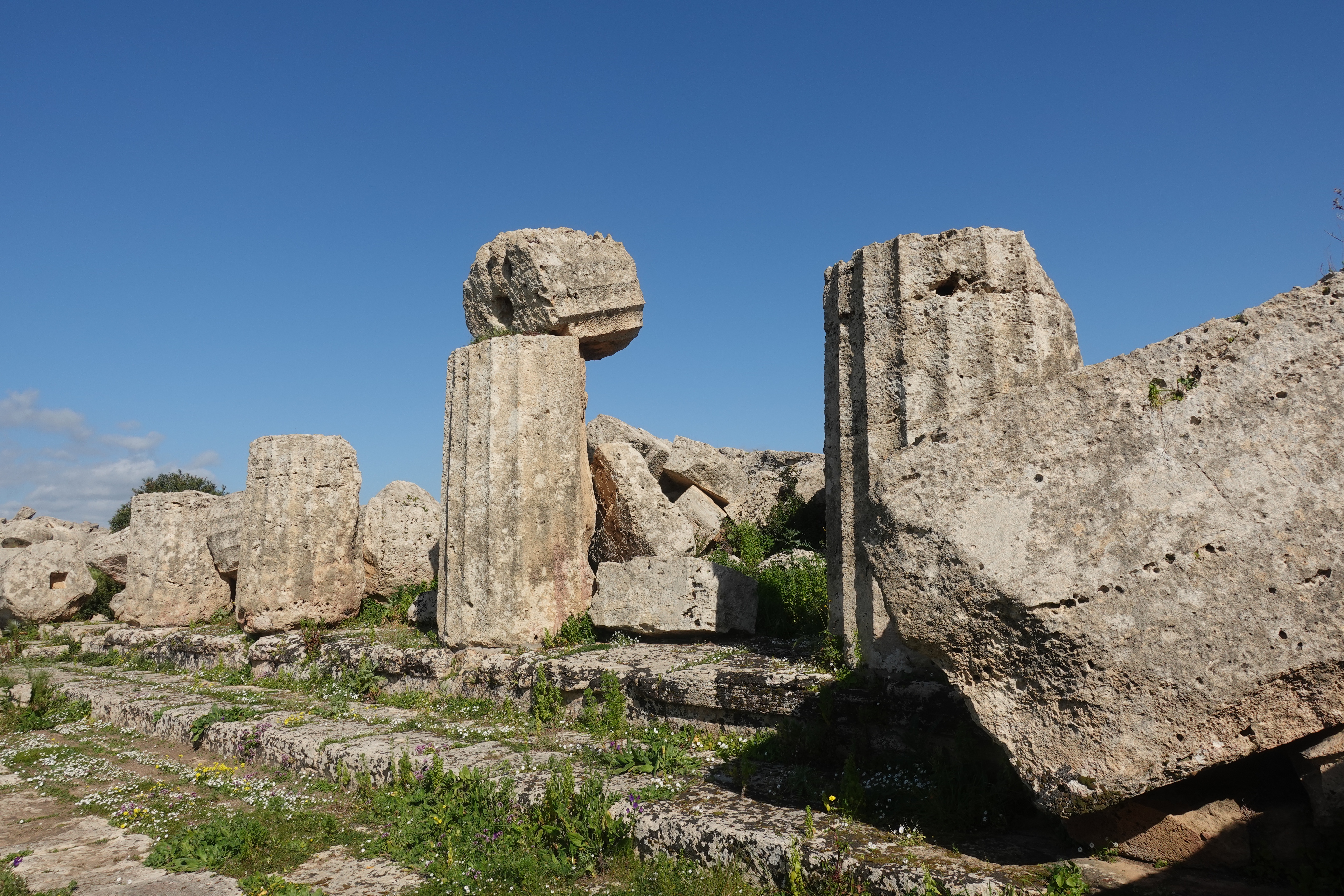 In Selinunte ist ebenfalls viel Tempel zu sehen. Hier wurde entdeckt, dass die Tempel eine bunte Angelegenheit waren und keineswegs nur weiß. Friese und weitere Ornamente waren damals bunt angemalt und müssen so schon fast wie Popart ausgesehen haben. Schade, dass wir diesen Eindruck nur erahnen können. In Selinunte liegen so viele Tempelbauteile herum, dass es den Anschein hat, ein Riesenkind hätte seine Bauklötze ausgeschüttet, damit gespielt und nicht wieder weggeräumt. Wir können uns nicht vorstellen, mit welchen Vorrichtungen diese riesigen Bauklötze aufeinander geschichtet wurden, um daraus einen Tempel zu errichten.