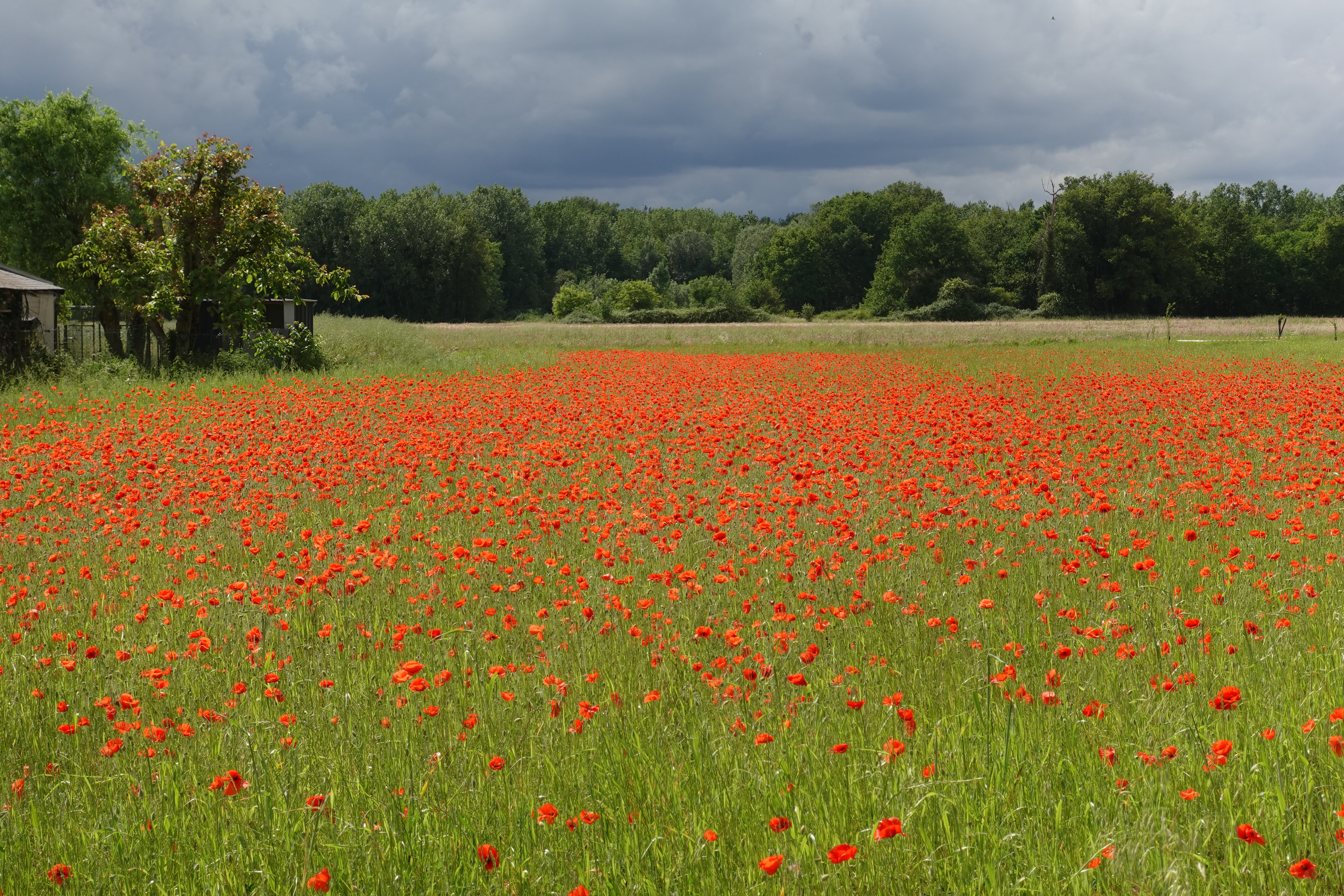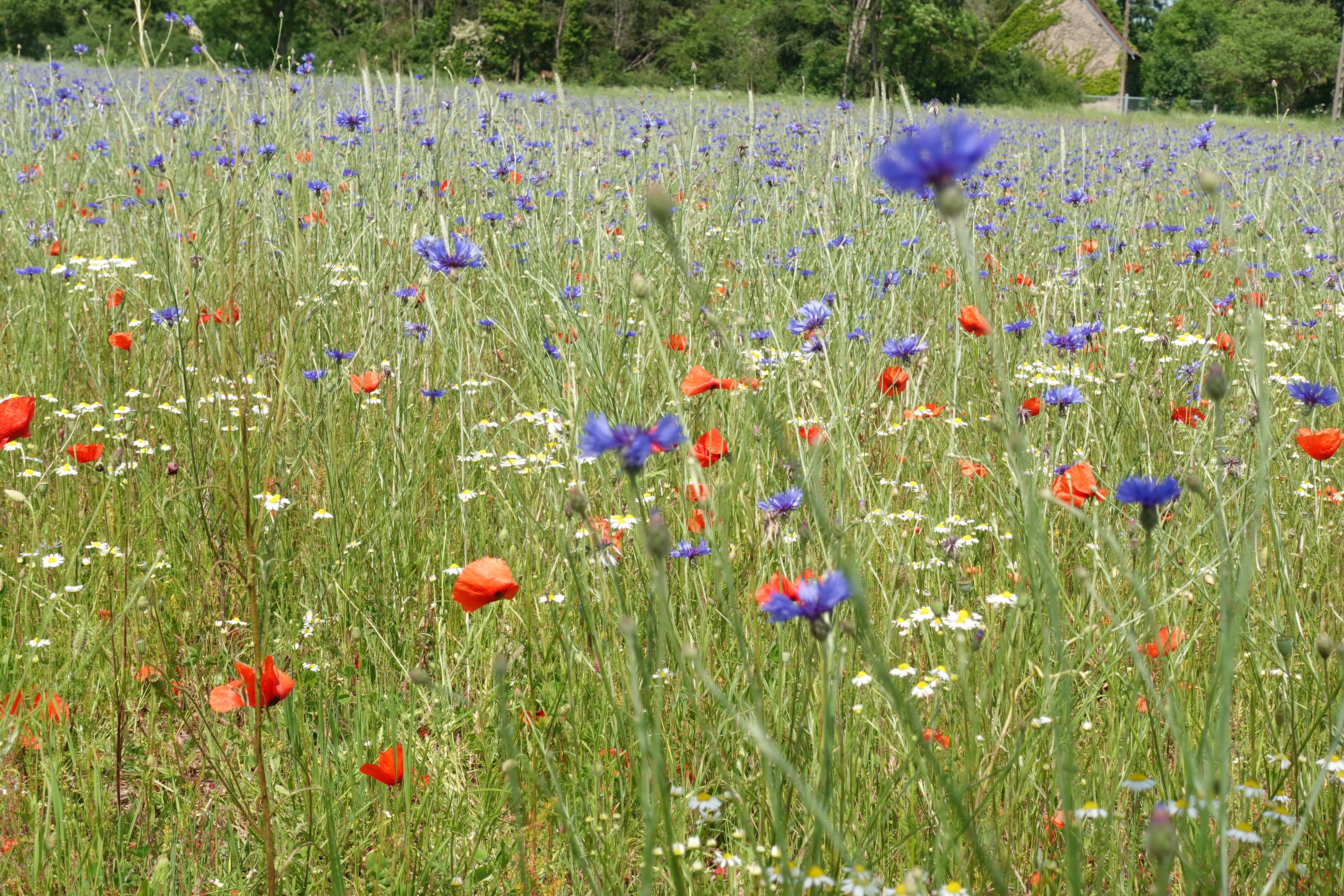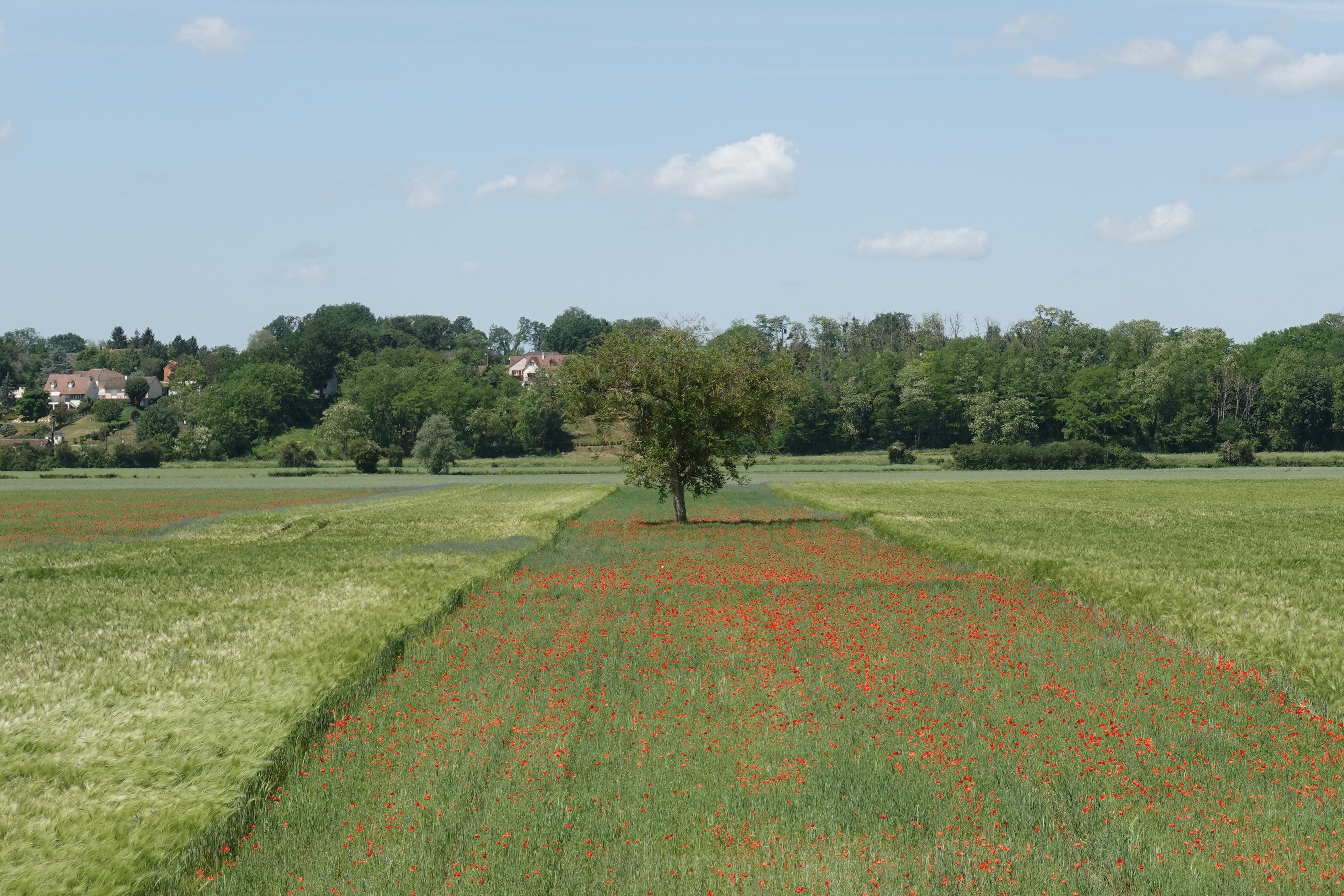 Warum Monet so viele Mohnfelder gemalt hat? Es wimmelt hier nur so davon. Überall sind Weizenfelder in denen sich der Mohn mischt, oder Wiesen, die nur aus Mohn zu bestehen scheinen. Wir können das nicht malen, aber fotografieren!
