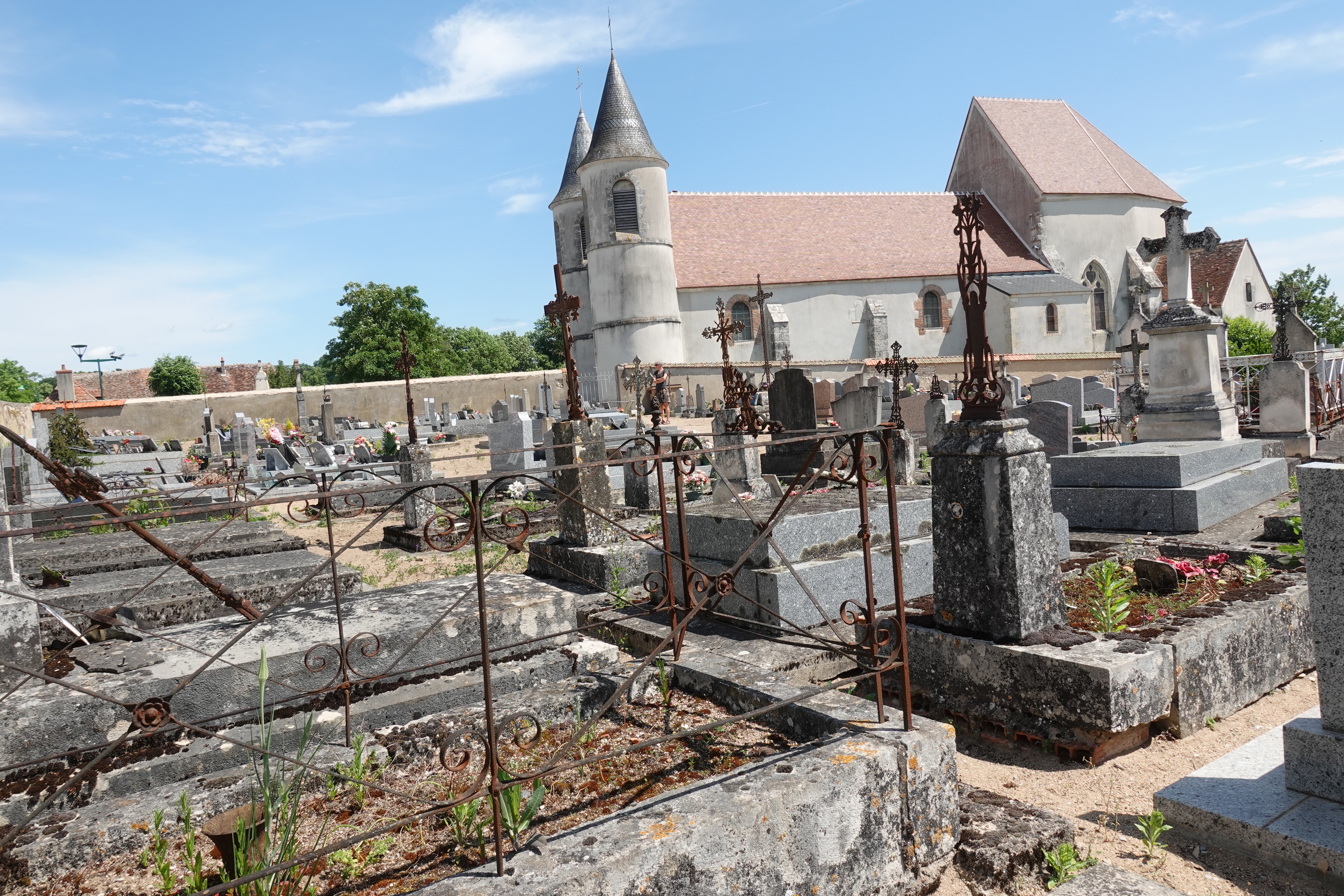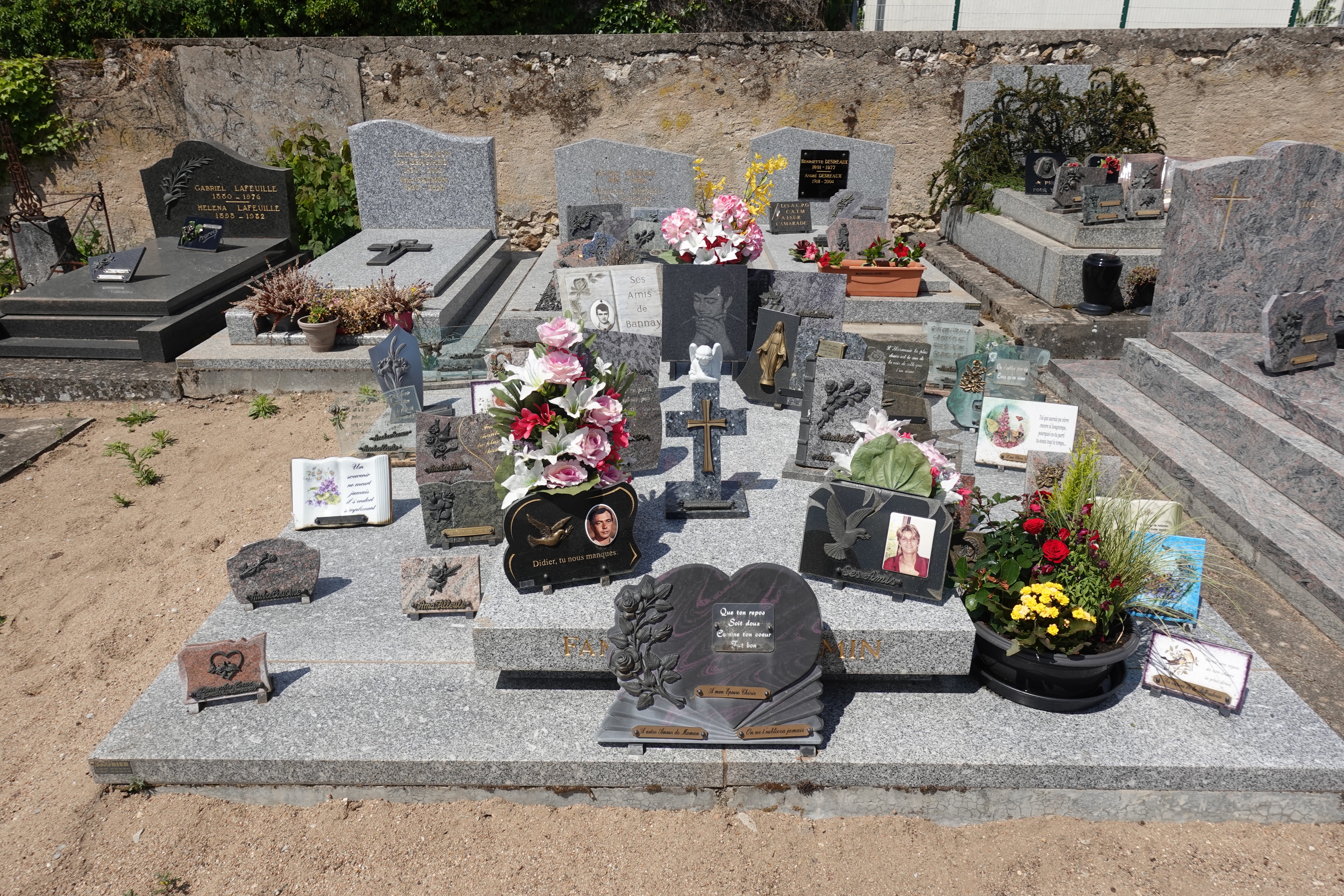 Wir sind immer sehr gespannt auf ein neues Land und seine Friedhöfe. Hier, in Frankreich, sehen wir Friedhöfe, bei denen die Gräber mit schweren Steinplatten komplett abgedeckt sind. Oben drauf werden dann weniger Blumen, sondern noch mehr Steintafeln gestellt. Das ist eigentlich recht praktisch, man muss nicht so häufig erneuern, Steintafeln welken nicht so schnell dahin. Allerdings sieht es dadurch auch ziemlich trist aus.
