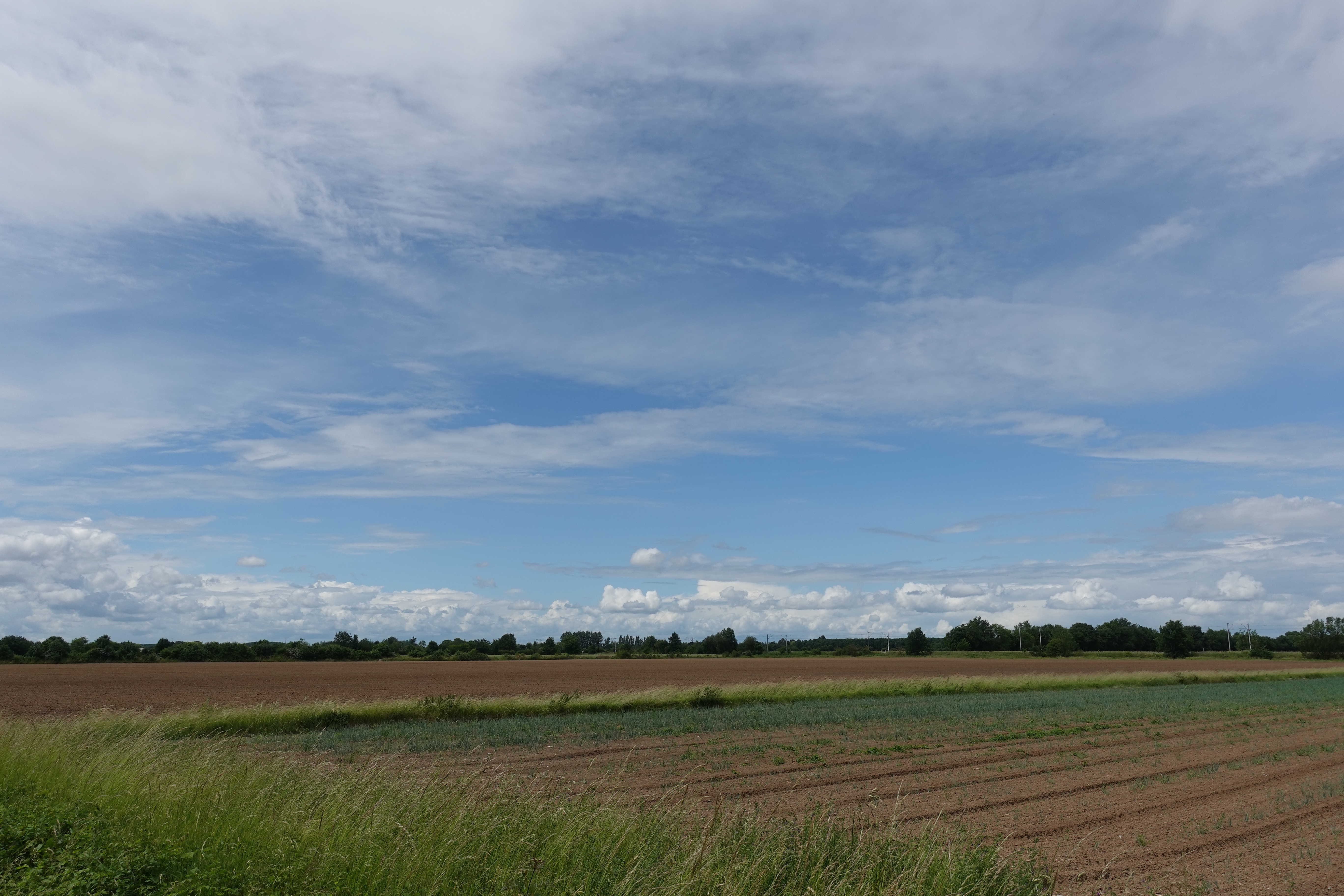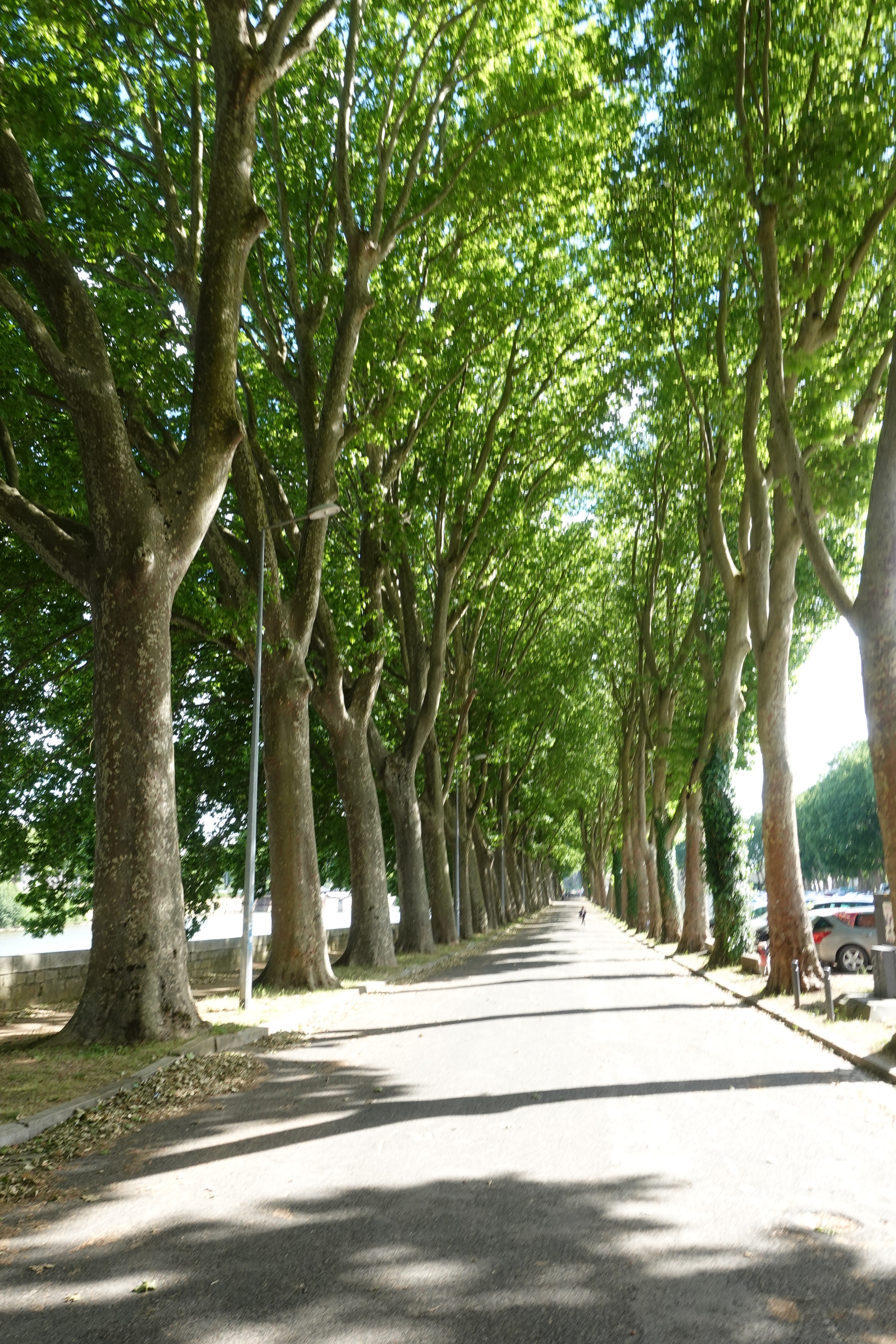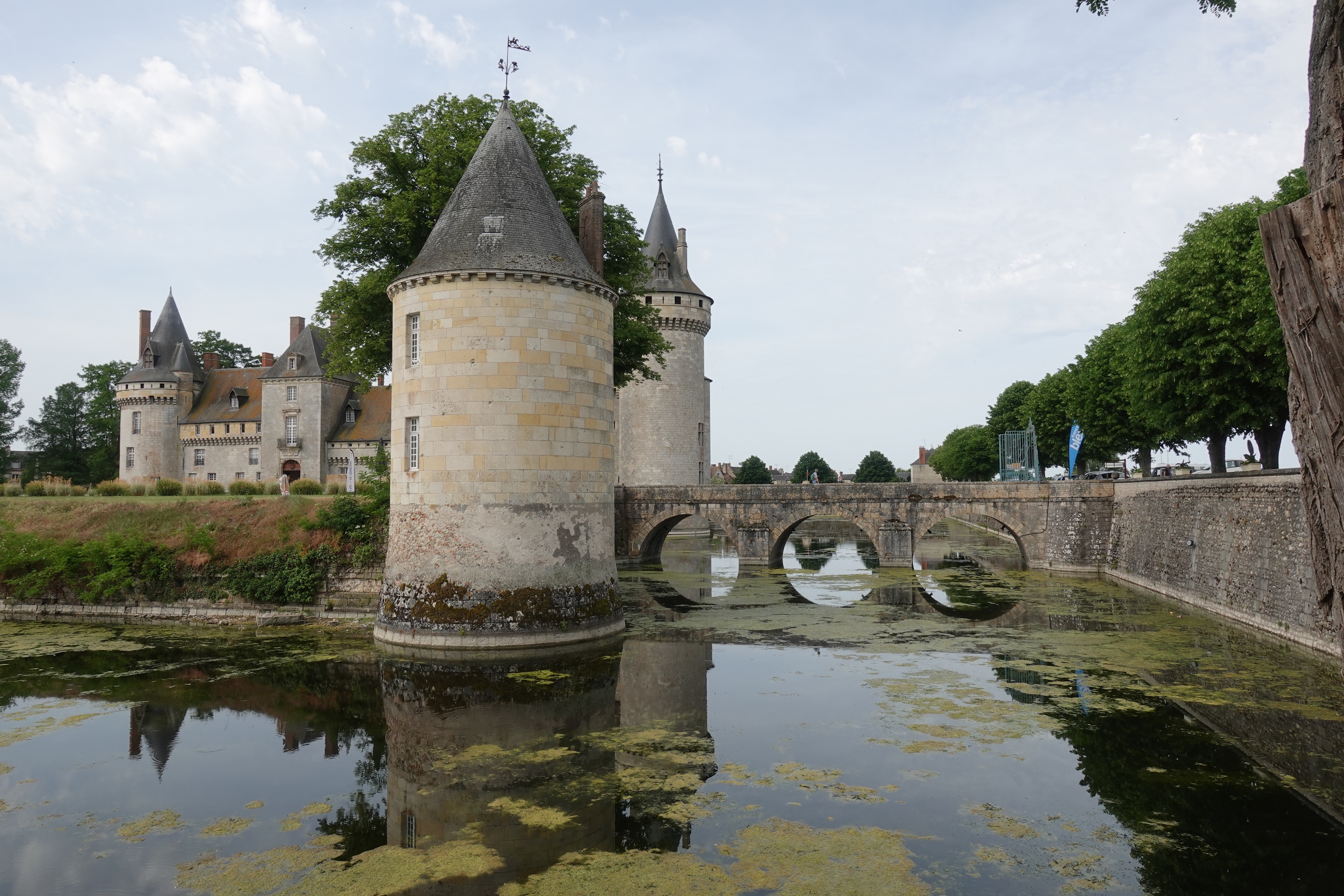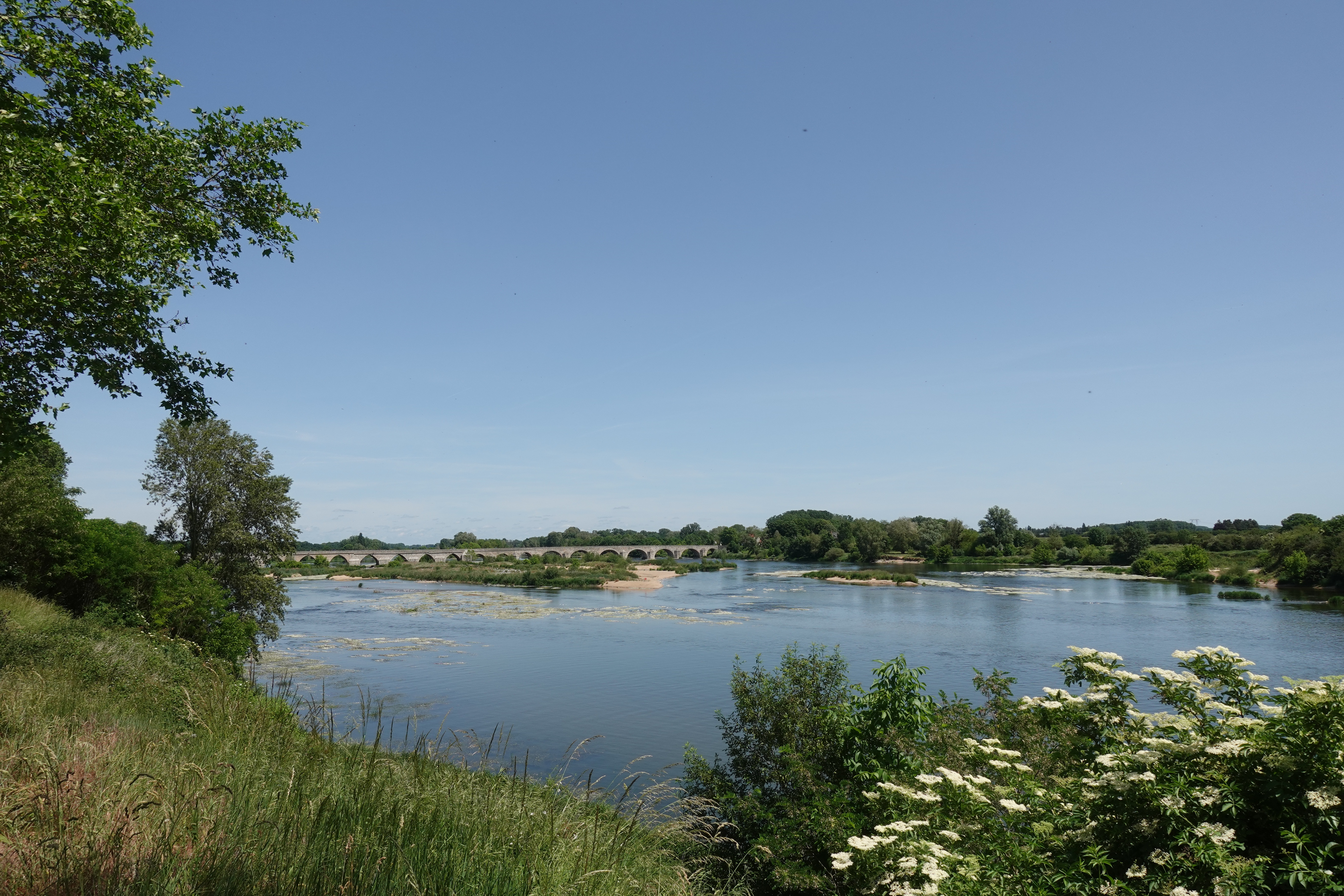 Wir sausen die Loire entlang bei bestem Wetter. Es ist warm, wir können im T-Shirt fahren, der Wind bläst gar nicht, oder ein wenig von hinten: es ist ein Vergnügen, so vor sich hin zu radeln, ohne sich um Verkehr und Navigation kümmern zu müssen. So kommt es, dass wir an all den großen Attraktionen der Loire vorbeidüsen. (Bis auf einen Leonardo da Vinci Park) Die Schlösser sind bestimmt toll und die Gärten auch … aber so dahinzufahren ist auch mal ein schönes Gefühl und deshalb machen wir das jetzt. Die Landschaft ist sowieso die Wucht und wir haben nicht das Gefühl, etwas zu verpassen. Wir genießen unsere Picknicks im Schatten fernab des großen Rummels.
