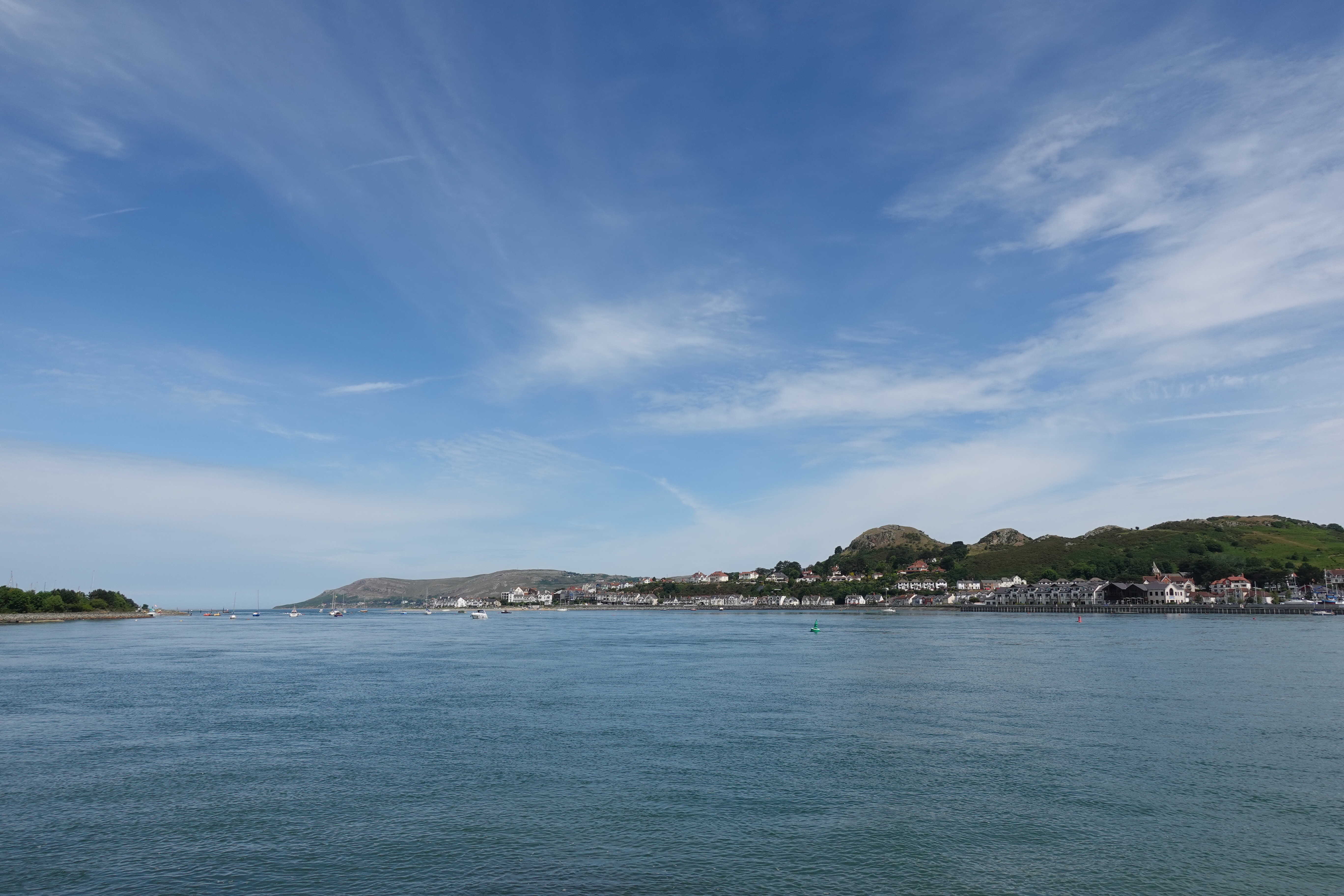 Von Dublin wollen wir mit der Fähre nach Liverpool übersetzen. Das geht nicht, denn die Fähre nimmt nur motorisierte Gefährte mit. Bens Fahrrad mit Motor fällt nicht in diese Kategorie und Kathrins Bio-Bike schon gar nicht. Dann schippern wir eben nicht nach Liverpool, sondern nach Holyhead. Auch gut! Holyhead ist in Wales und von Wales haben wir keine Ahnung, nur, dass es im Titel des englischen Thronfolgers auftaucht. Wir dürfen eine landschaftlich beeindruckende Radtour über die Insel Anglesey erleben. (So heißt die Insel, auf de Holyhead liegt und die zu Wales gehört, aber dem Festland vorgelagert ist.) Wir radeln durch Weideland, sanfte Hügel rauf und runter, immer hohe Berge (Snowdonia) vor uns, die sich von blauen Scherenschnittgebilden in weiter Ferne zu sehr beeindruckenden hohen Berge wandeln. Bevor es zum Äußersten kommt und wir die Berge hochrackern, biegen wir ab und fahren an der Küste weiter rRichtung Liverpool.