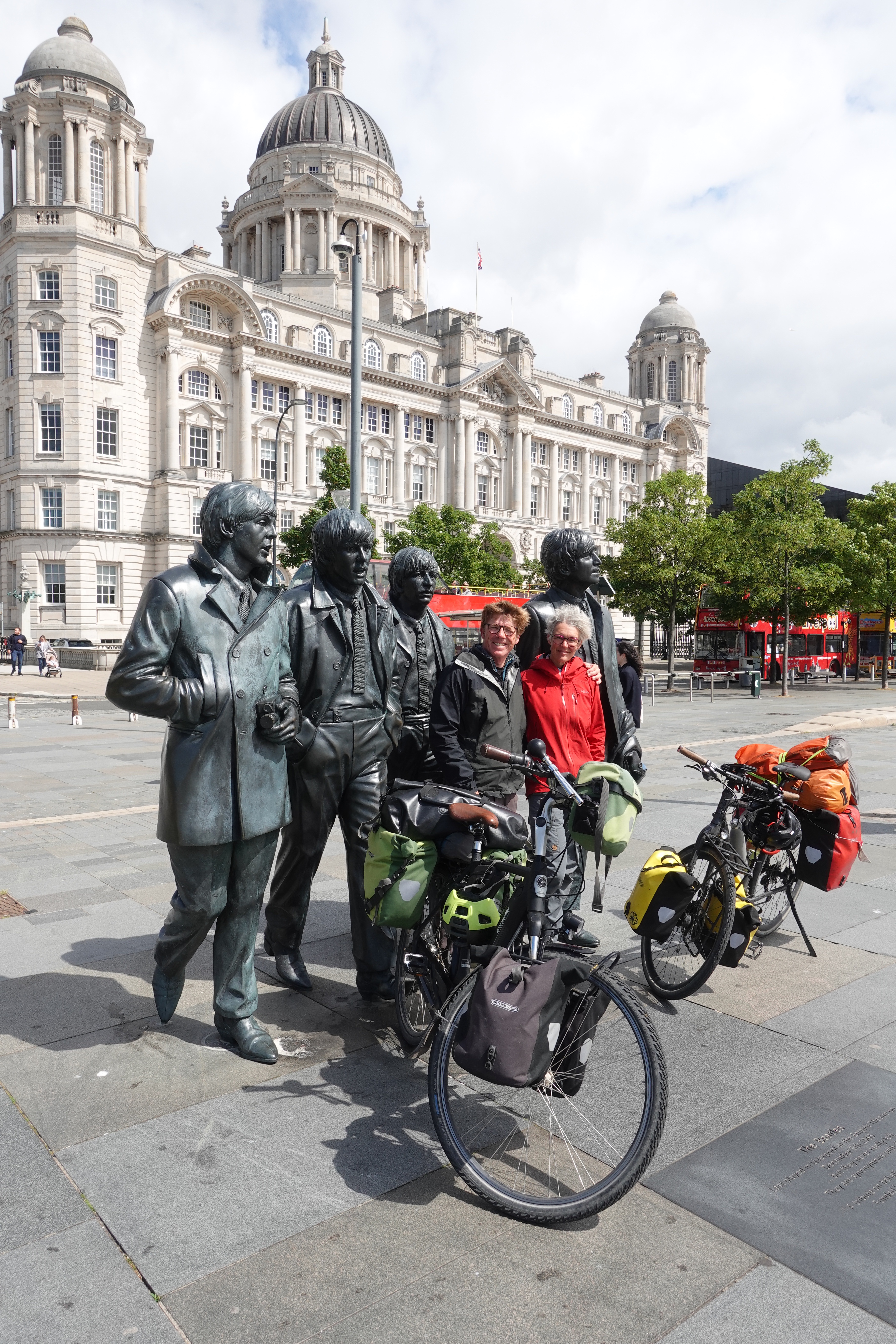 Wir kommen in Liverpool/England an und wissen noch nicht so recht wohin. Erst laufen wir den Beatles über den Weg und dann kommen zwei Menschen auf uns zu: Juliane und Christian, zwei liebe Nachbarn aus Dortmund. Die Freude ist riesig! Wir setzen uns in die Sonne und tauschen uns lang und breit aus. Schließlich haben wir uns fast ein Jahr lang nicht gesehen. So eine Wohltat, Freunde zu treffen. Wir fühlen uns ganz aufgeregt und spritzig in Kopf und Bauch. Gemeinsam senden wir noch einen sängerischen Gruß an die Nachbarschaftstruppe und dann geht jeder wieder seiner Wege.