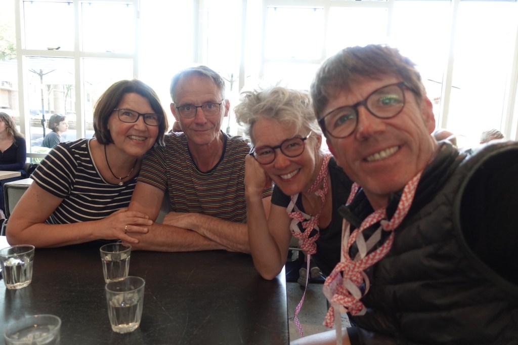 In Rotterdam fahren wir zum vereinbarten Treffpunkt. Dort warten bereits Kris und Jörg auf uns und empfangen uns mit Luftschlangen und Luftballons. Sie wollen mit uns gemeinsam die Strecke nach Hause radeln. Was für ein Freude und ein Glück. Mit so lieber Begleitung ist das Ende unseres Jahres und das nach Hause fahren viel leichter. Wir fühlen uns aufgehoben und verstanden, denn es ist schwer, das Nomadenleben auf dem Rad zu beenden. Auch wenn wir es jetzt nicht verlängern wollen würden und uns auf zu Hause freuen.