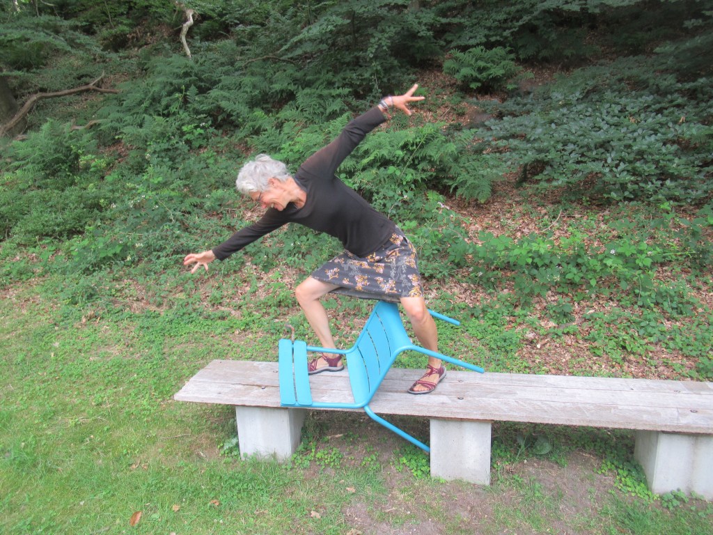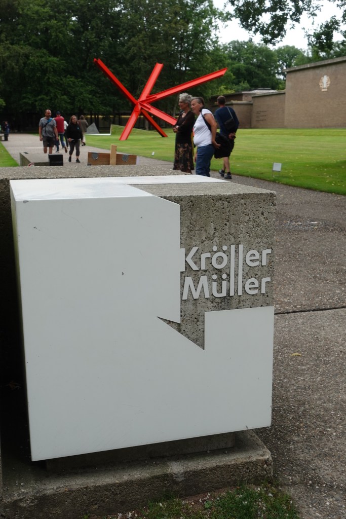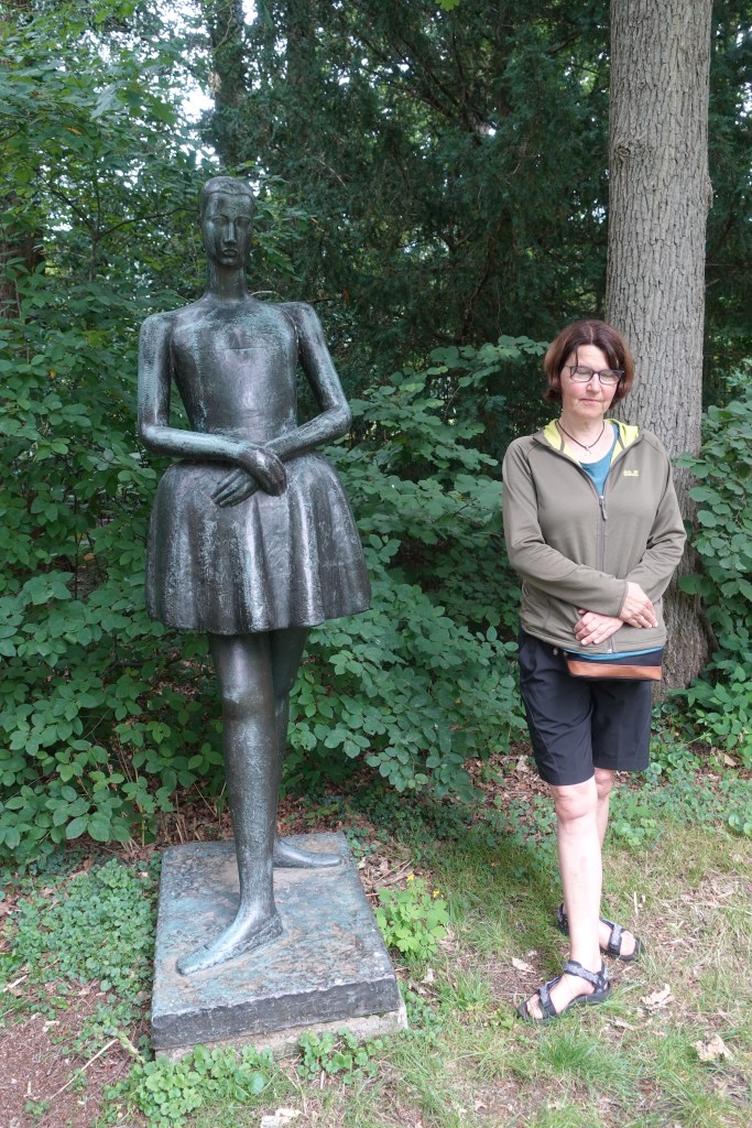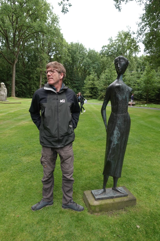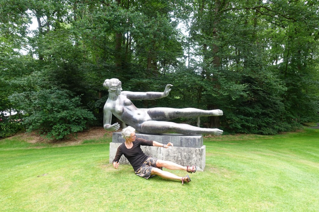 Bine Schlaps stößt auch noch zu unsere kleinen Gruppe, ebenfalls eine liebe Urlaubsfreundin. Sie kommt extra aus Bremen angefahren und bringt im Auto ein Faltrad mit. So können wir zu fünft im Park Hoge Veluwe umhersausen und uns Museum und Skulpturenpark ansehen. Mit viel Körpereinsatz nähern wir uns der Kunst an.