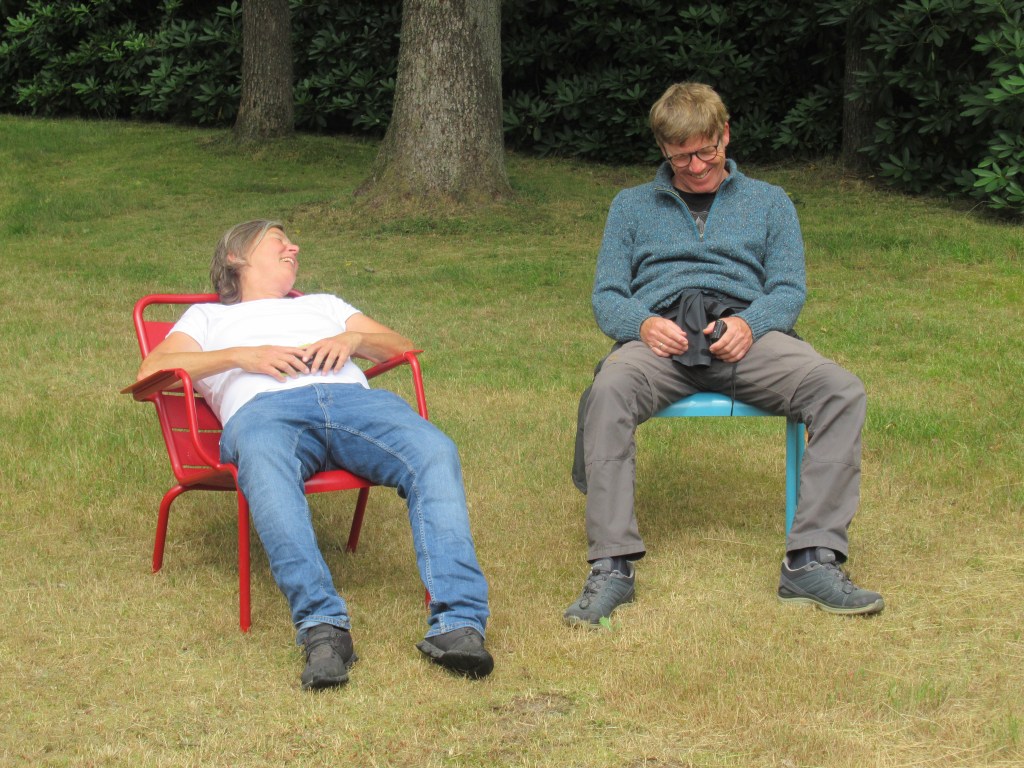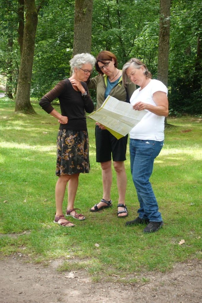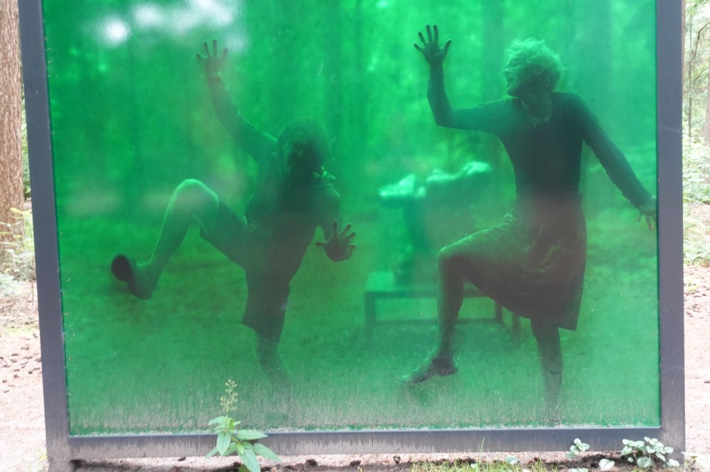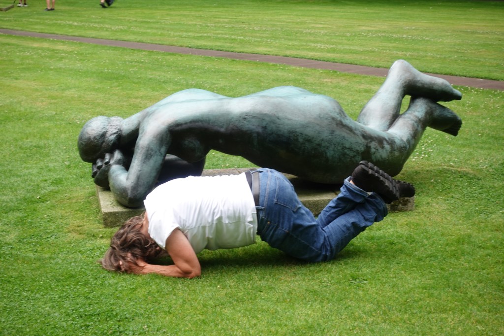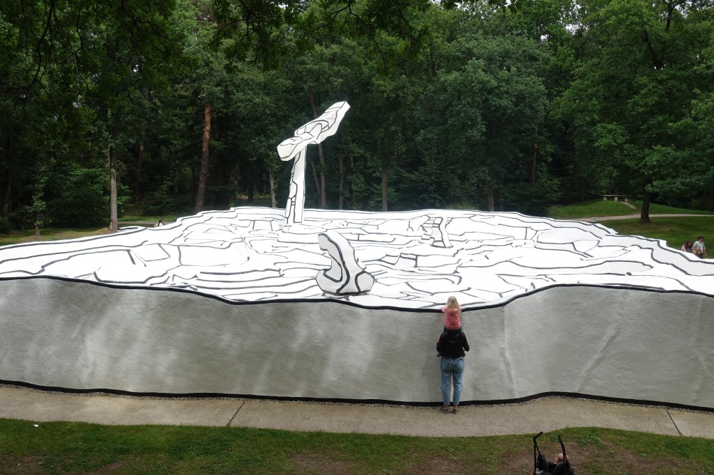 Bine Schlaps stößt auch noch zu unsere kleinen Gruppe, ebenfalls eine liebe Urlaubsfreundin. Sie kommt extra aus Bremen angefahren und bringt im Auto ein Faltrad mit. So können wir zu fünft im Park Hoge Veluwe umhersausen und uns Museum und Skulpturenpark ansehen. Mit viel Körpereinsatz nähern wir uns der Kunst an.
