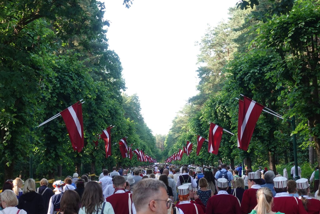 Von Andris und Helmuts erfahren wir, dass viele Menschen kurz vor dem Fest noch extra in einen Chor oder eine Tanzgruppe eintreten. Helmuts ist extra in den Juristenchor eingetreten, damit er mitsingen kann. Aus allen Ländern reisen Lett:innen an um z. B. als „Lettischer Chor aus Belgien“ mitzumachen. Wo schon mal alle da sind, werden dann auch noch Konferenzen und Wirtschaftstreffen abgehalten. Ganz schön praktisch.