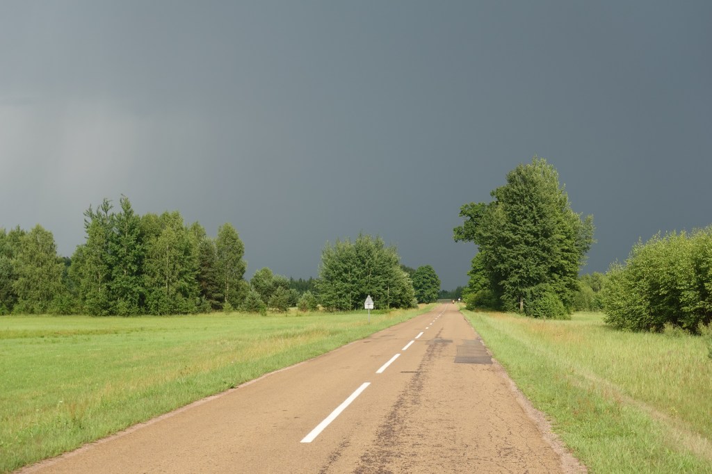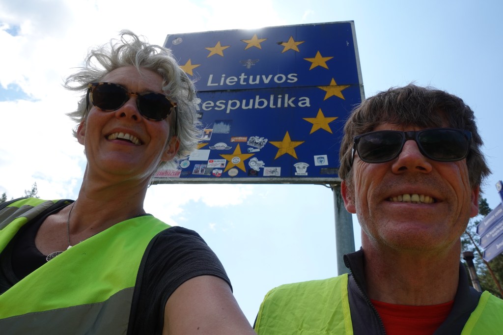 Wir durchqueren den Slowinski-Nationalpark, eine Wohltat, denn es ist heiß und unter den Bäumen ist die Luft angenehm kühl. Es lässt sich gut aushalten, auch die Tatsache, dass wir komplett die Route verlieren, einmal im Kreis fahren und der Weg kaum als solcher zu bezeichnen ist, wirft uns nicht aus der Bahn. Als wir endlich wieder die richtige Sand-Route gefunden haben queren etwas vor uns zwei Wölfe den Weg. Wir nehmen zumindest an, dass es Wölfe sind, denn alle anderen Tiere, die es hier in diesem Park gibt, passen nicht ins Bild. Ganz sicher sind wir uns nicht, aber aufregend finden wir es jedenfalls. Bei der Recherche, ob es tatsächlich Wölfe gewesen sein können, finden wir unter anderen auch diesen interessanten Artikel.