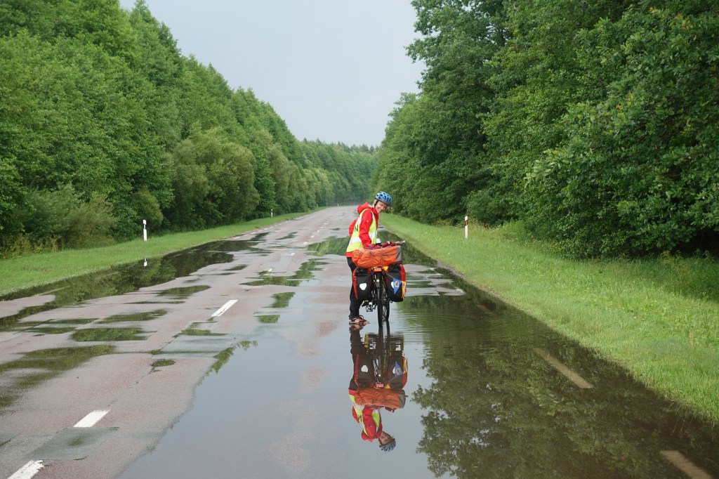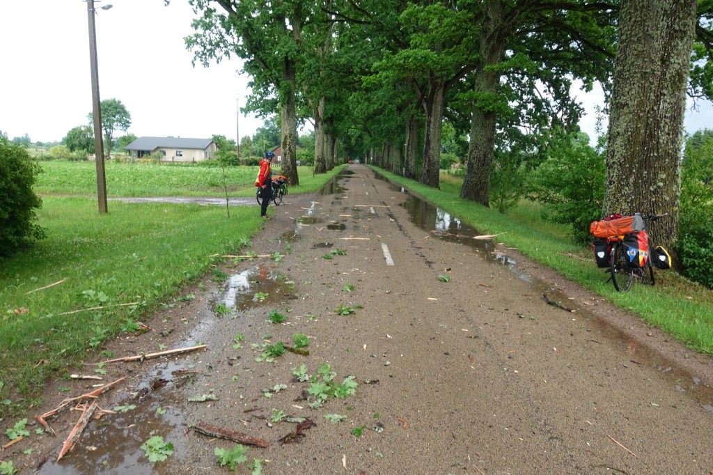 Wir lassen Danzig hinter uns fahren weiter entlang der Küste, immer Richtung Westen durch einen ständigen Mix aus Rummelplatz mit vielen Menschen, ruhigen Abschnitten mit Mini-Dörfern, Waldgebieten und Seen. Es ist eine ziemliche Wundertüte, weil wir nicht wissen, was hinter der nächsten Kurve kommen wird. Mit den Straßenbelägen ist es ähnlich: es gibt glatten Asphalt, Sand, Schotter, Waldwege und Huckelpisten. Wahlweise mit Längs- und Querrillen.